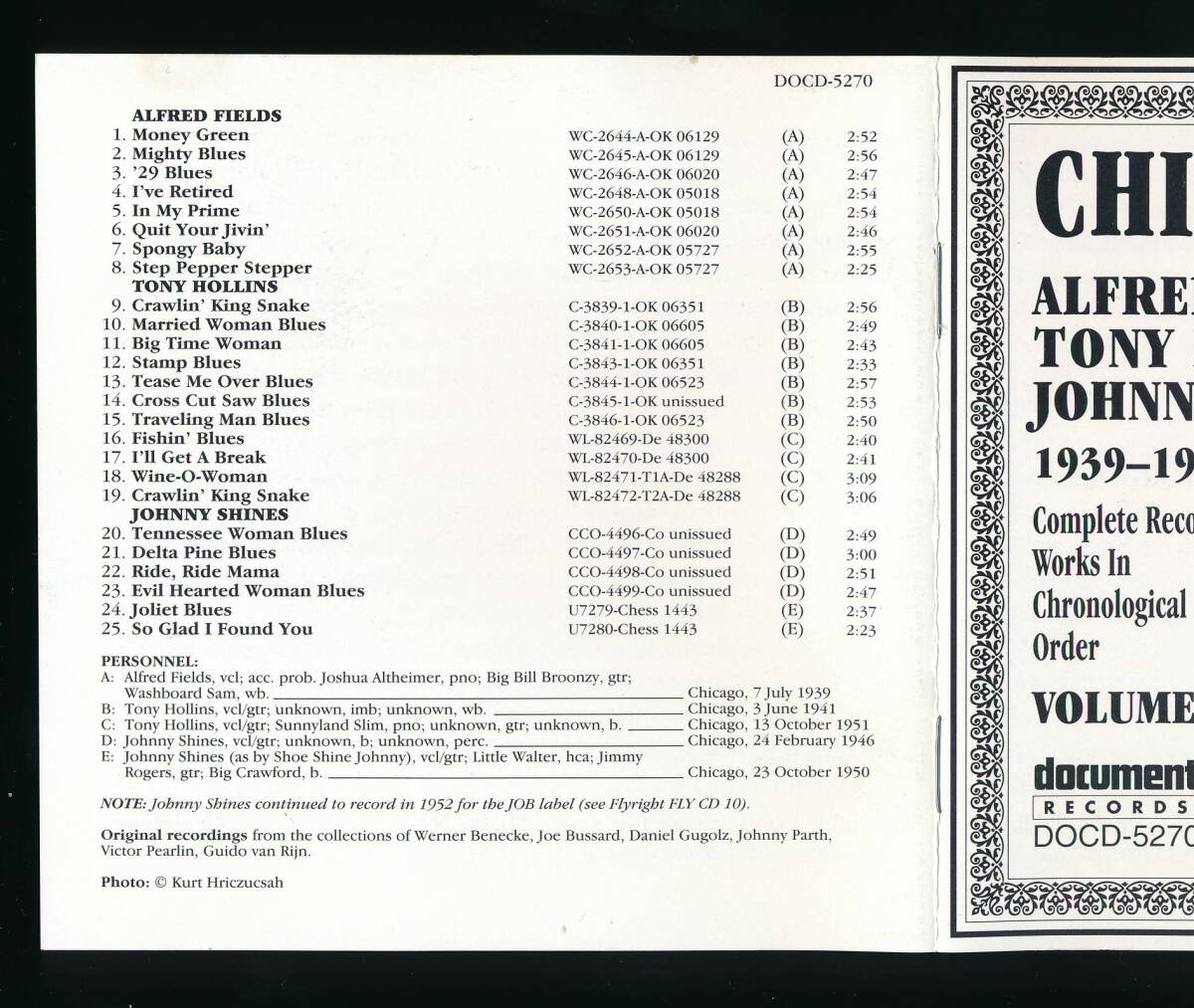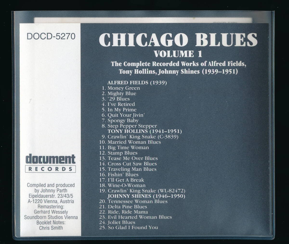 ALFRED FIELDS, TONY HOLLINS, JOHNNY SHINESのCD「CHICAGO BLUES VOLUME 1 (1939-1951)」の輸入盤・中古品です。