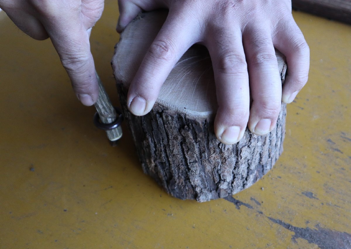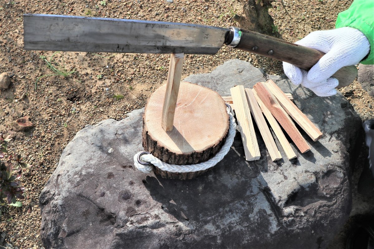 | ※携帯/薪割台〈Mini〉はキャンプ等で焚火をする時に、手軽に鉈で材を小さく割って頂く |
