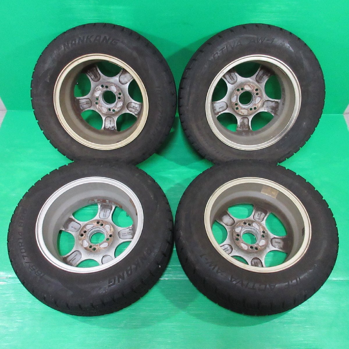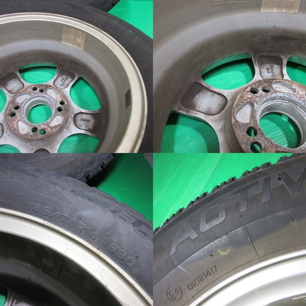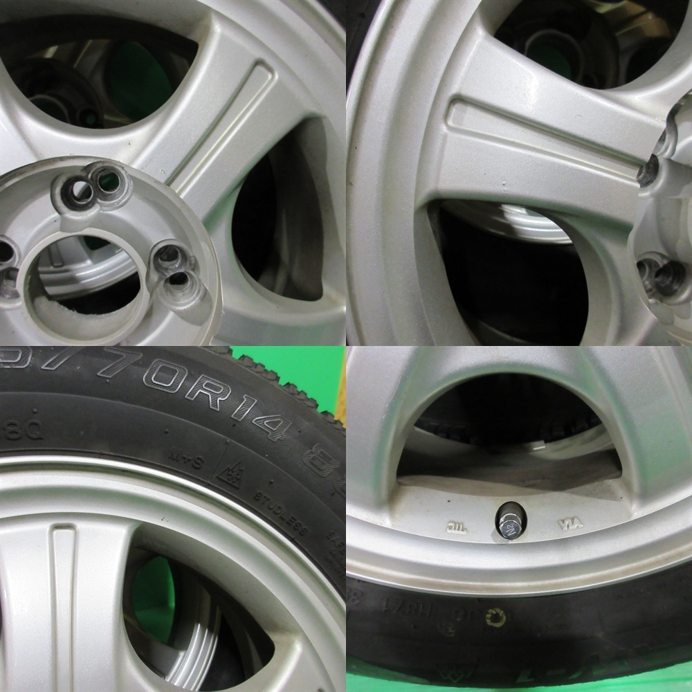 ・備考 【タイヤ】 残り溝:70%-85%山程度 ※雪上でご活躍いただける溝深さです。 サイドの傷:1か所(浅い傷) 【ホイール】 腐食・サビ:中程度に有(裏側) 円周部ガリ傷:3-5か所程度 小傷や浅い傷等:中程度に有 黄ばみ:中程度に有 汚れ付着:中程度に有 ホイールの一言評価『 使用感有 』 ※その他 センターキャップは装着していません。 未洗浄商品です。 ※できるだけ詳細調査致しました。使用品・中古品となりますので、商品画像や商品説明を良くご覧いただいてご検討下さいませ。 ・発送について ![]() | ||||