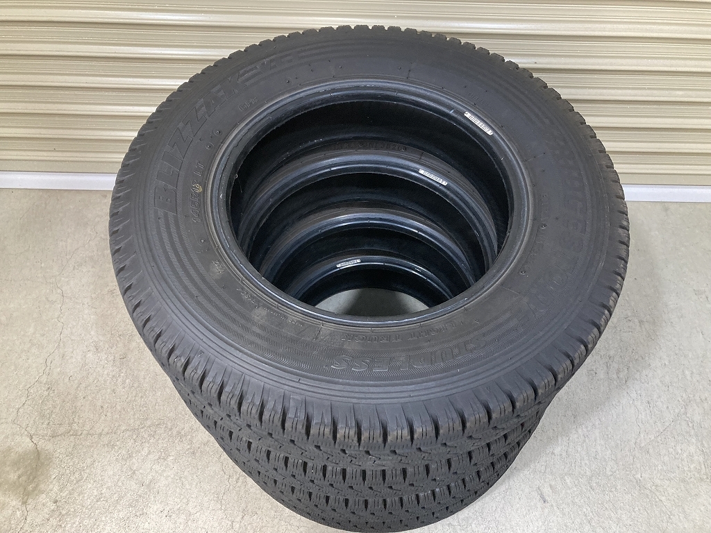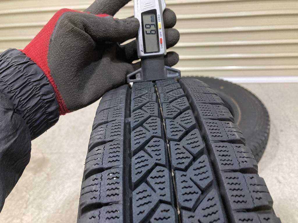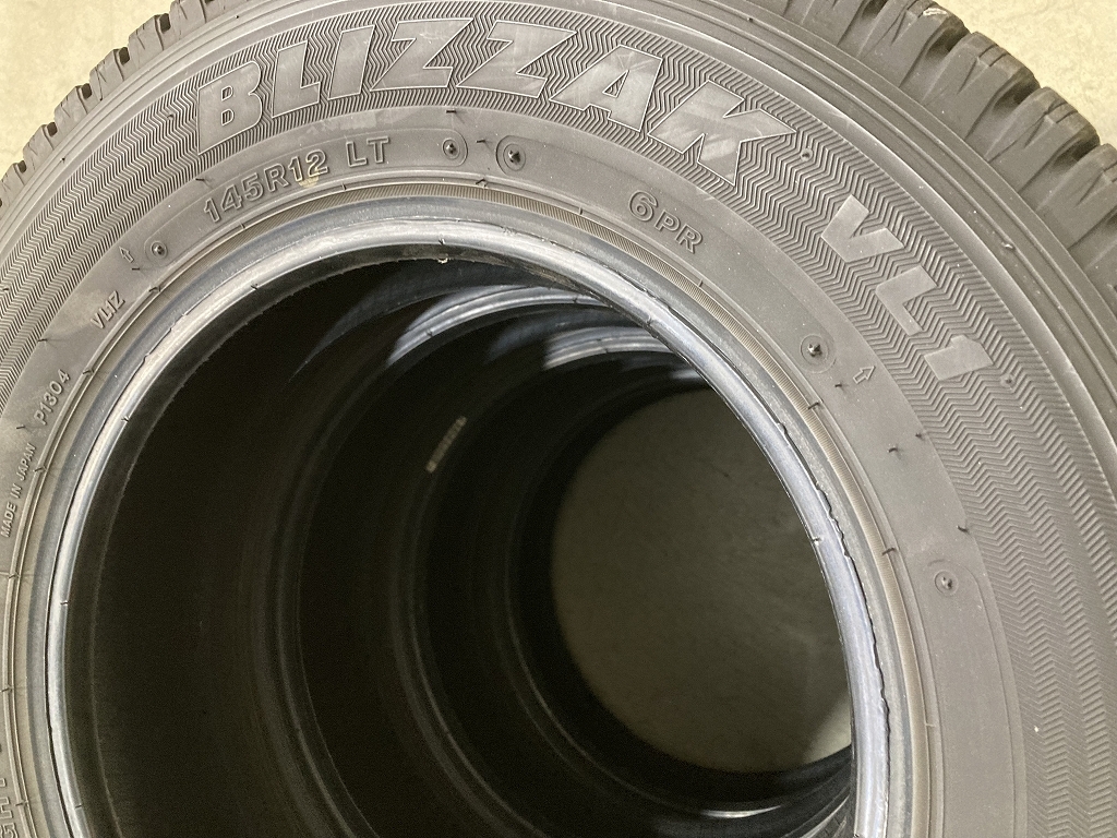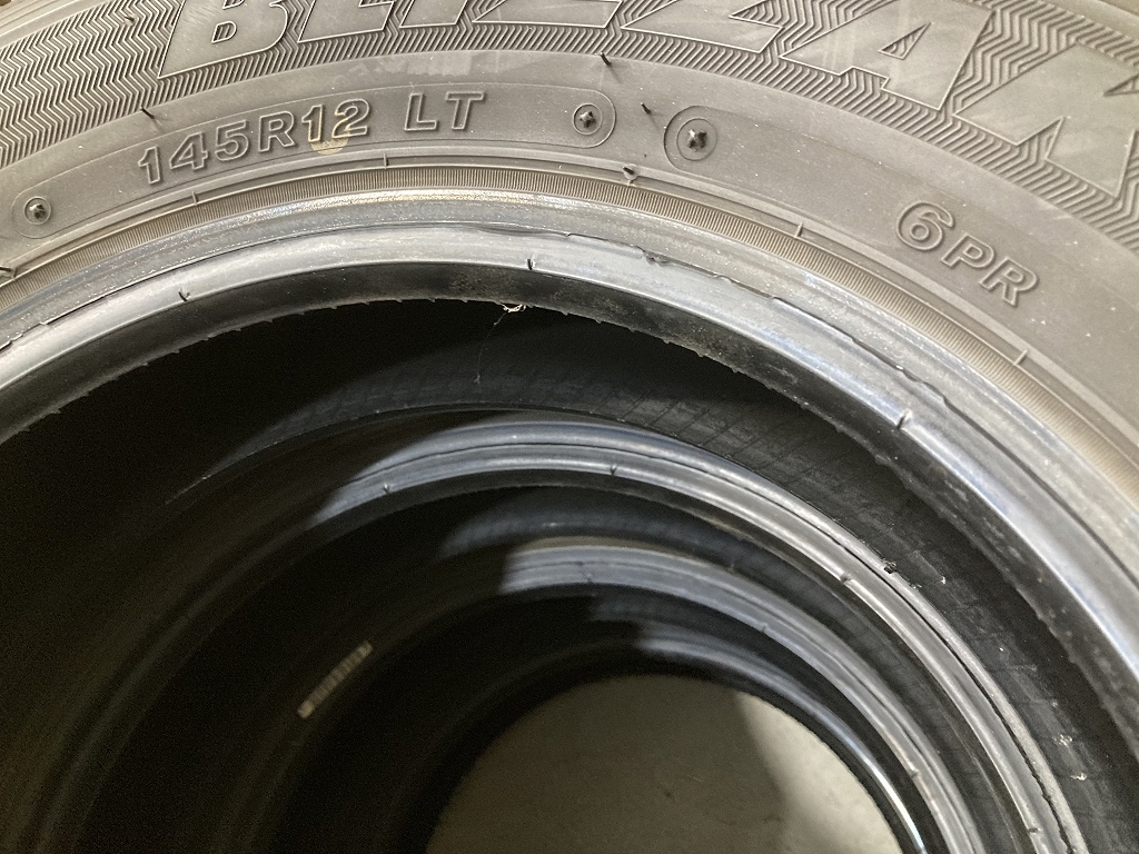 〇タイヤ情報 BRIDGESTONE BLIZZAK VL1 ・サイズ 145R12 LT 6PR ・製造年 2020年 ・本数 計4本 ・残溝 約7.5~8.5分溝(センター付近測定時) ・状態 エア漏れ、パンク修理痕、ビード切れはありません。 | ||||