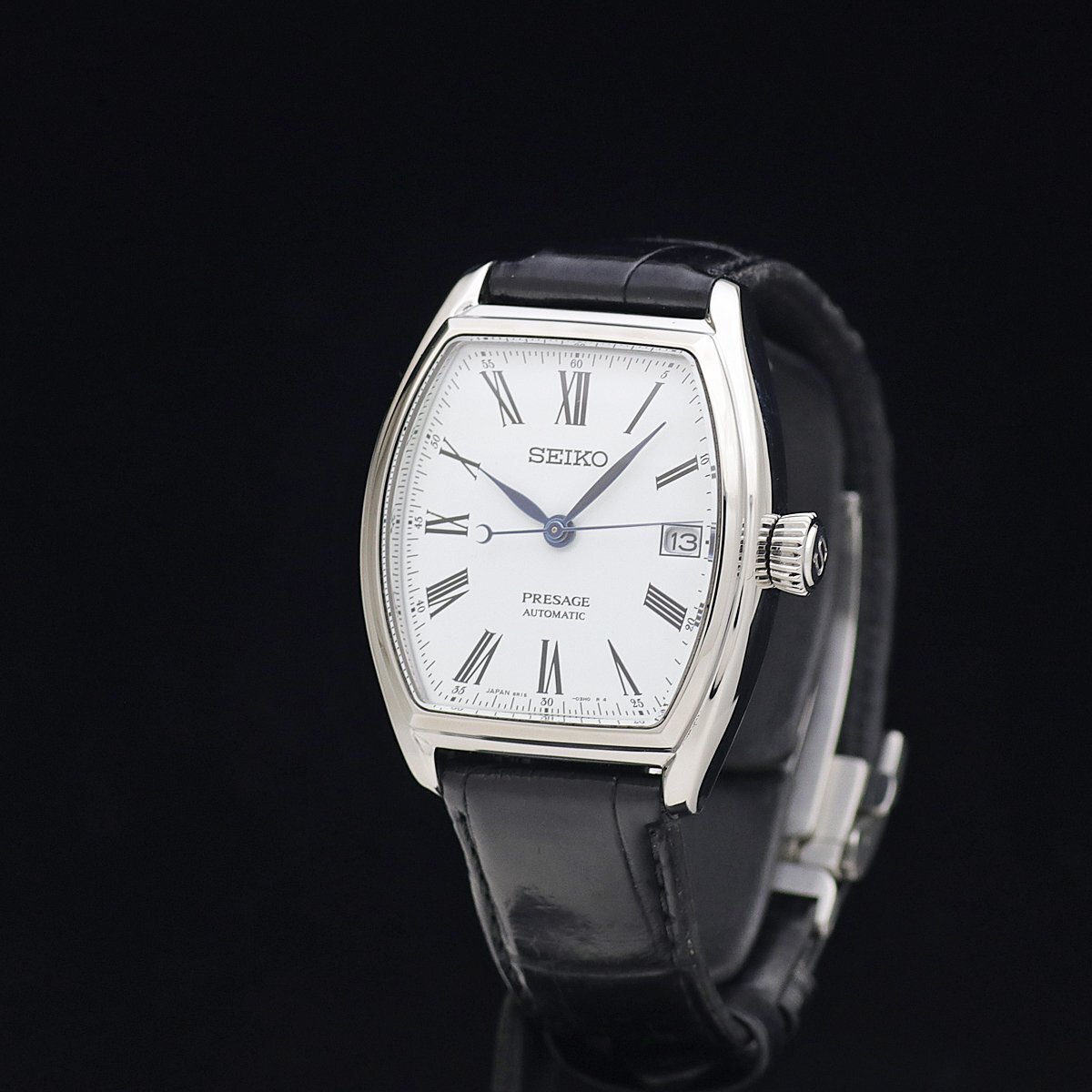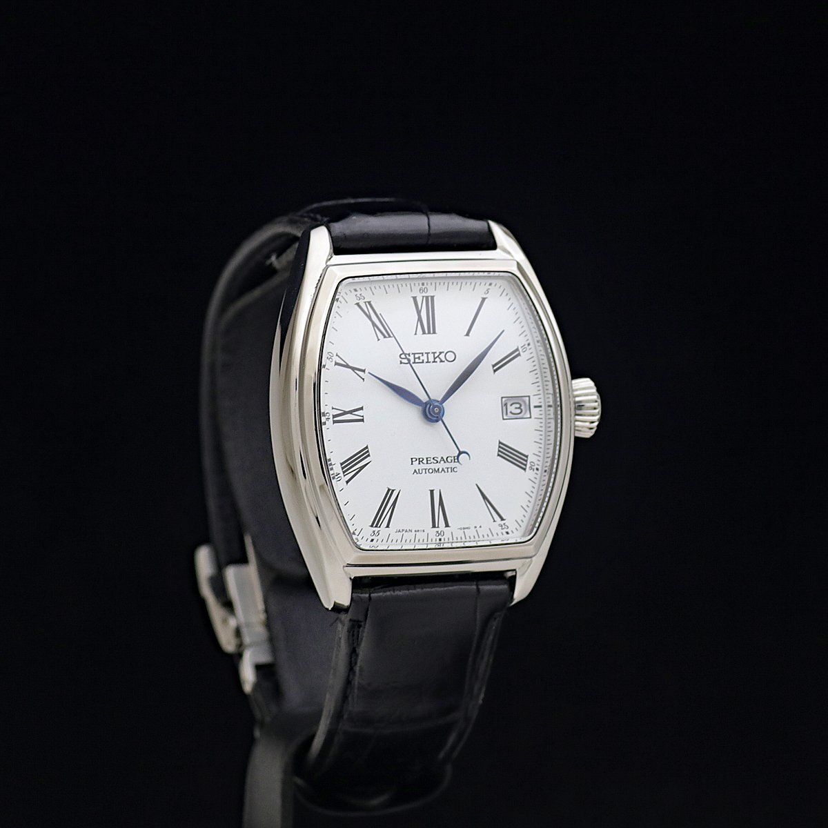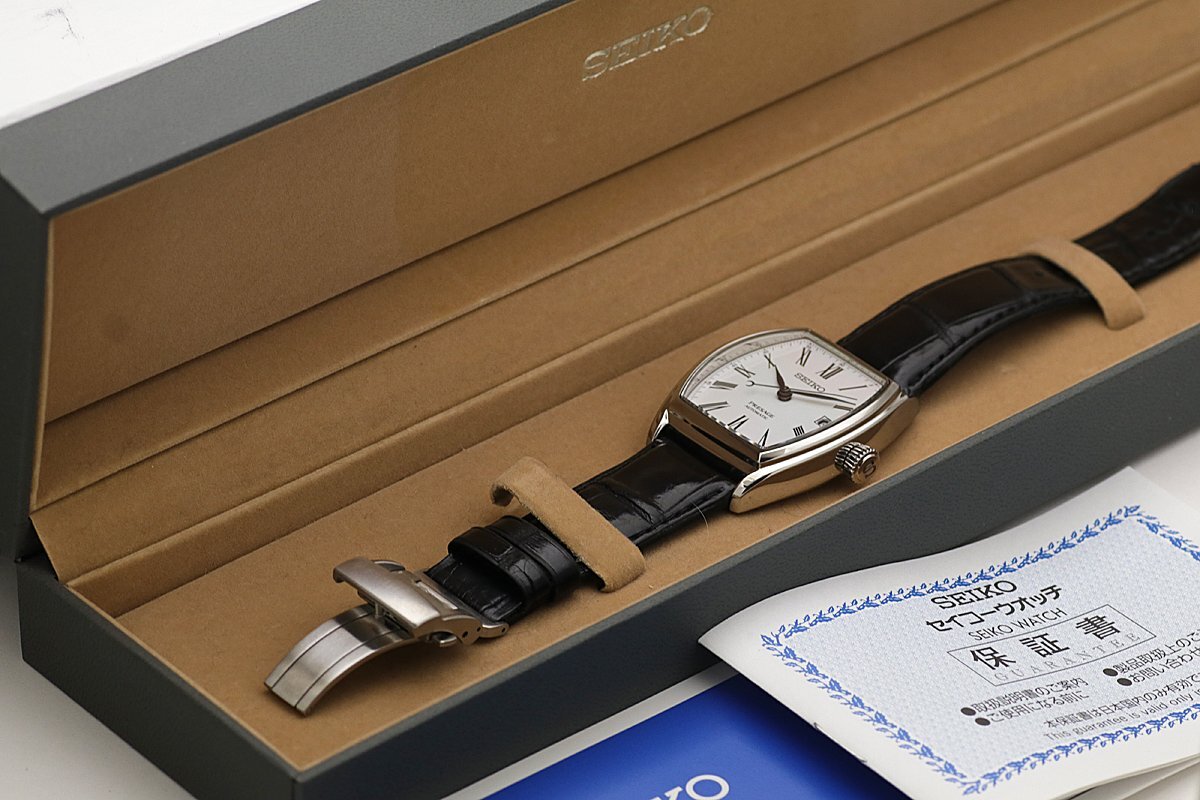 | 商品説明 | ![]() ![]() ![]() ●SEIKO セイコー プレサージュ プレステージライン 琺瑯ダイヤル メカニカル ●Ref:SARX051 ●Cal:6R15-03T0(6R15D) ●シリアル:010*** ●メンズ/自動巻 ●日差:+7秒~+8秒(機械計測) ●ケース/ブレス素材:SS/レザー(ベルト・バックル純正品) ●文字盤色:ホワイト ●ベゼル径:36mm ●ケース径:40mm(リューズ込み) ●ケース厚:12.8mm ●腕周り:最大19.5cm ラグ幅:20mm バックル幅:18mm ●重さ:86.7g ●定価:\132,000-(税込) ●付属品:外内箱(一部汚れ、ヤケあり)、保証書(2022年5月購入品)、取説 ●ランク:SA~A 【ランク詳細】 S 新品、未使用 SA 極上美品(細かな傷も少なく、とても綺麗) A 美品(細かな傷はあるが、目立つ傷がない) B USED(細かな傷はあるが、目立つ傷が少ない) C USED(細かな傷があり、目立つ傷が多少ある) J ジャンク(動作不良、一部動作不良、動作未確認) ●薄い傷、他擦り傷はありますが、使用感は少なく超美品です。ベルトもきれいです。バックルの一部には保護フィルムが貼ってあります。 ●ガラスは両面無傷です。針、文字盤ともにきれいです。 ●動作確認済みで、正常に動作します。 ●オーバーホール歴は不明です。 ●詳細は 販売店サイトをご覧ください。 ●新品、未使用品、かなりきれいで手を加える必要がないと判断した商品以外は、弊社もしくは専門の業者にて、専用の器材を使って洗浄、研磨等を行い、出来るだけきれいな状態でお届けできるよう心がけております。また梱包の際には除菌シートにて清掃を行った上で発送させていただきます。(一部革素材は行いません) ●ご質問、ご不明点は「m1t2m3_2006@sun.cims.jp」までご連絡ください。 | ||||||||||||||||