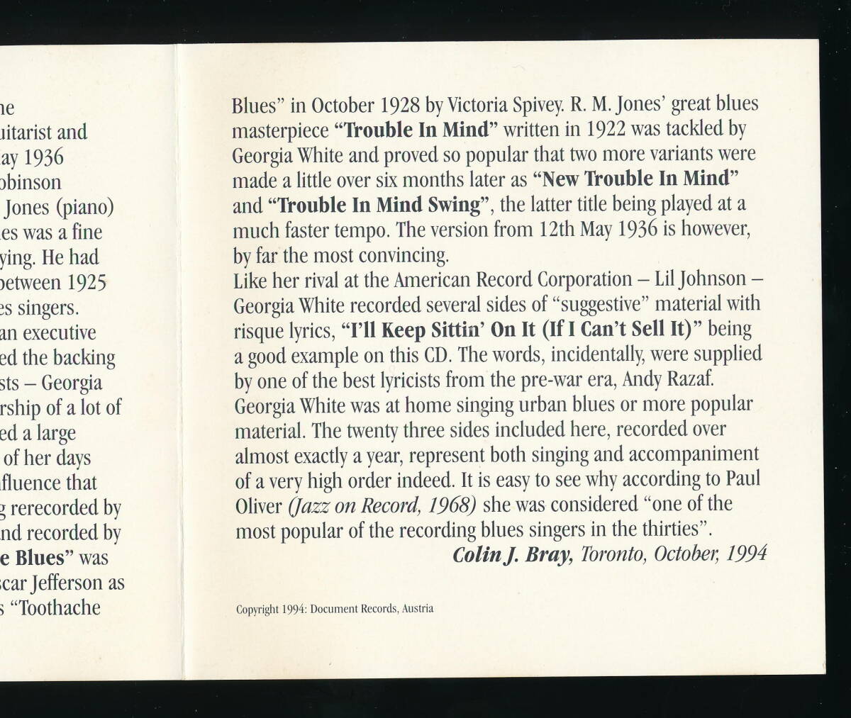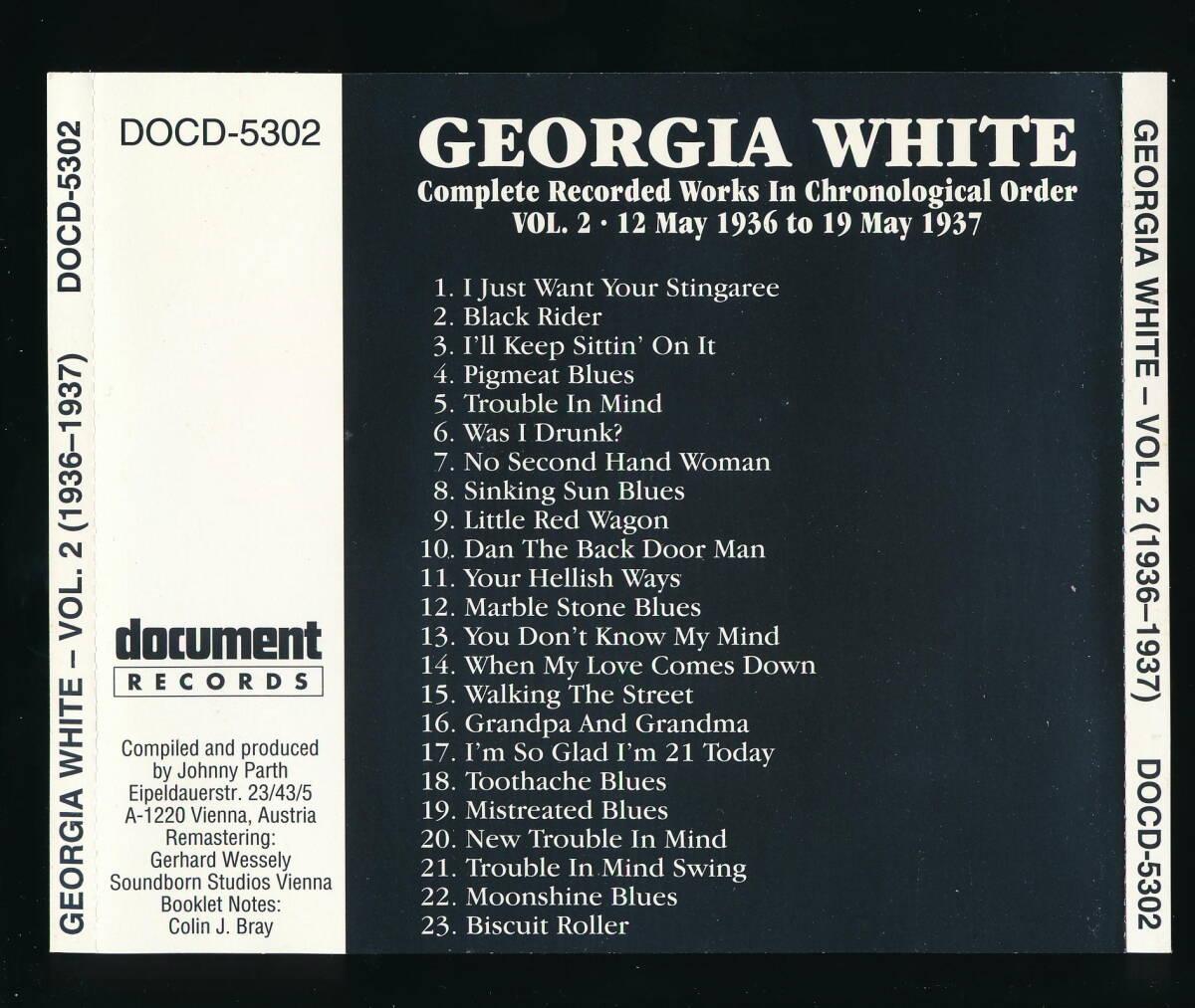 GEORGIA WHITEのCD「COMPLETE RECORDED WORKS IN CHRONOLOGICAL ORDER VOLUME 2 (1936-1937)」の輸入盤・中古品です。