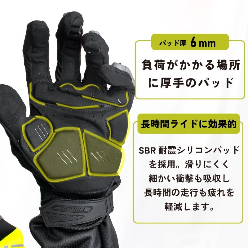 秋冬用自転車グローブ。人指し指はタッチパネル対応なのでスマホやタブレット、サイクルコンピューターの操作もグローブを装着したまま行えます。 停車中のナビゲーション操作も可能に。 このサイクルグローブの特徴は手の甲に保護ゴムを採用。転んで転倒しても手の甲を地面との接触から保護する事で怪我のリスクが軽減。 手の裏にもハンドルを握る際負荷が掛かりやすい場所に厚手のパッドを配置。 細かい衝撃を吸収する事で長時間走行の疲れを軽減します。 ロードバイクやクロスバイク、mtbの他にもオートバイや原付などのバイクにもおすすめです。 グローブ内は裏起毛で肌ざわりが良く保温性があり暖かい。 手の裏には無数の通気穴を設置している事で蒸れや汗冷えを防ぐ。 適温気温は秋冬、晴れた冬日やおよそ気温10度ぐらい。 マジックテープで装着もスムーズに行えます。 とてもかっこいい秋冬用サイクルグローブです。 [衝撃吸収] ハンドルを握り負荷のかかる手の裏には約6mm厚のパッドを配置。 SBR耐震シリコンパッドを採用し、滑りにくく細かい衝撃も吸収。 長時間走行での掌の疲れを軽減。 [転倒時の怪我から守る] 手の甲には耐衝撃に優れた3D保護ゴムを採用。転んで地面と接触しても極力怪我のリスクを軽減します。 安心で安全なプロテクター。 [タッチパネル対応] 親指、人差し指の先に特殊素材を採用。 装着したままスマホやサイコンの操作が可能。 ナビなどの簡単操作が出来るので便利! [保温性/防風] 内側は保温性を高める裏起毛素材で肌触りが良く柔らかく気持ちが良い。 手の甲の3D保護ゴムは防風対策にも。 [抜群の通気性] 汗を素早く吸収して乾かし蒸れにくい汗冷えを防ぐ。 手の甲には、優れたマイクロファイバーメッシュという素材を採用。 手のひらと指のところに通気穴。 [手首眺めデザイン] 手首の裾が長めにデザインされている事で服の袖との間に素肌がでないようになります。 マジックテープでしっかり締める事で防風効果が向上。 [様々なシーンに] 自転車、バイク、サバゲー、登山、ハイキング、サイクリング、キャンプ、レジャー、射撃、釣り等のアウトドア運動、自転車での通勤、通学、ランニングやウォーキングなど幅広くお使いいただくのに最適です。 商品内容秋冬向きサイクルグローブ 素材75%ポリエステル、20%スパンデックス、 5%シリコン 仕様裏地フリース仕様 ・商品は入荷によりキズがある場合があります。 その場合、保証対象外になりますのでご了承お願い致します。 ・ディスプレイ環境により実物と色が異なる場合が有ります。 ・入荷時期により予告無く一部仕様変更する場合が有ります。 |