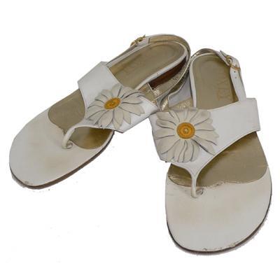 | トゥにマーガレットがついたキュートなサンダル☆ヒールのないタイプなので、歩きやすい♪涼しげなデザインで、今からの季節に活躍してくれます! |