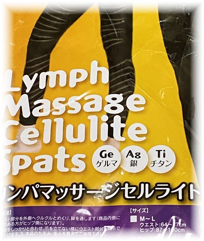 | ■ リンパマッサージセルライトスパッツ M~L 新品・未使用ですが、1袋開封済、袋にシワがあります。 自宅保存となりますので、ご理解頂き、ご入札お願いします。 神経質な方・完璧をお求めの方は、ご入札をご遠慮下さい。 (撮影光により、色のイメージが多少異なるかと思います) | |||