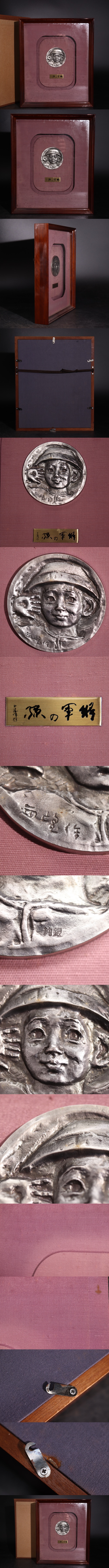 | 純銀 印刻 北村西望 作 「 将軍の孫 」 箱付 / 銀 金工 彫金 壁飾り 額 額縁 煎茶飾 .G3038 |