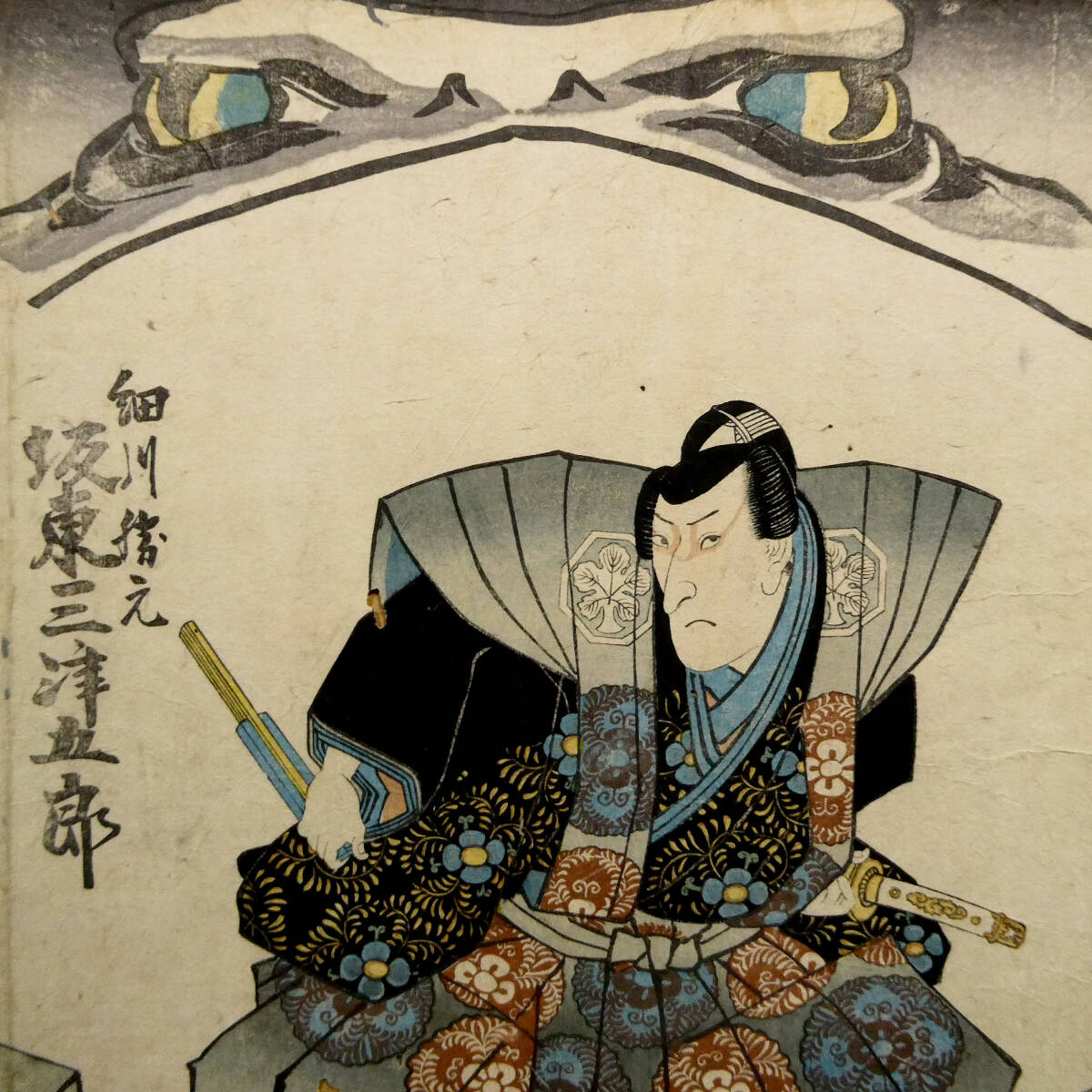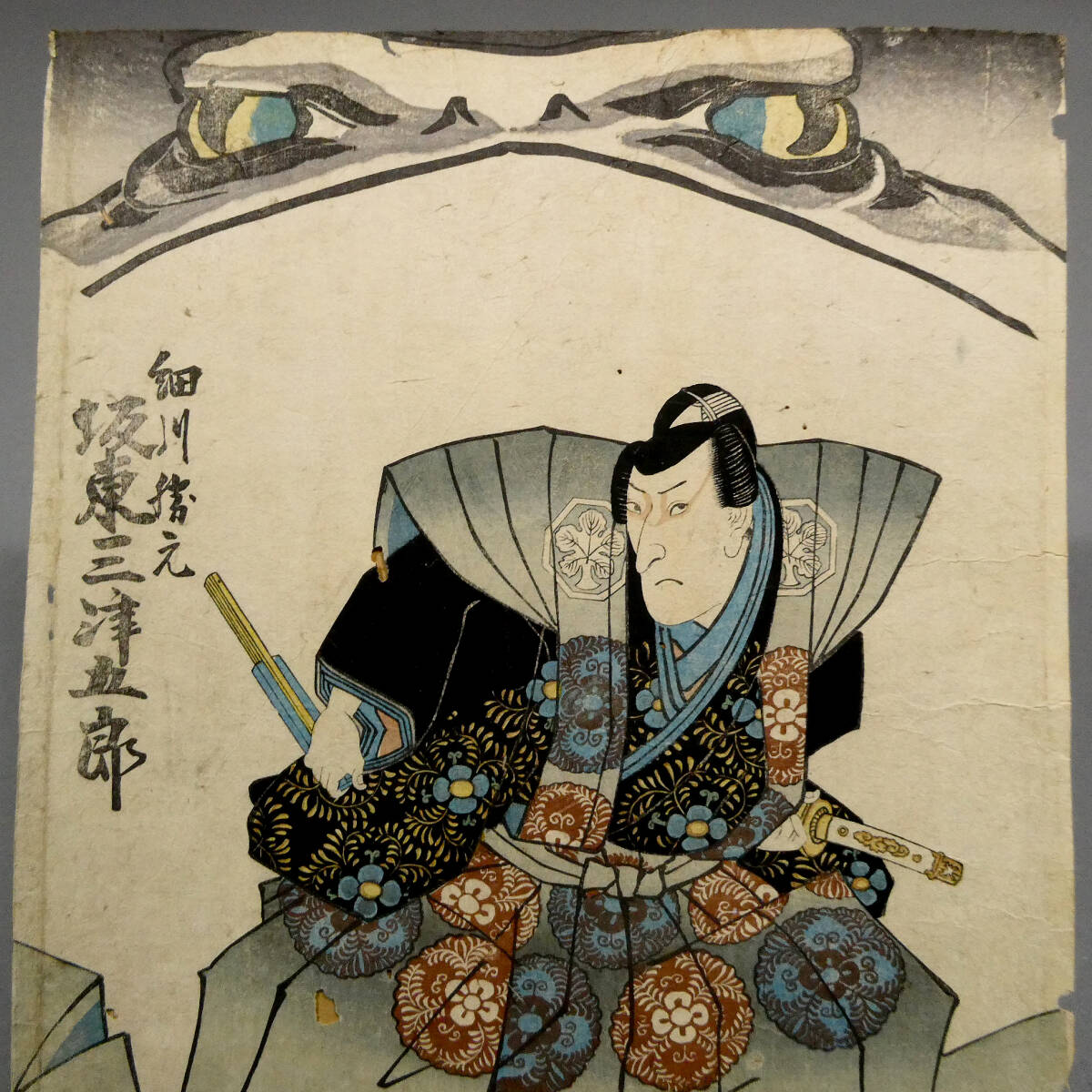 ■ 五渡亭国貞 妖怪画 怨念 「細川勝元 坂東三津五郎」 江戸時代 木版浮世絵 応仁の乱 東軍総大将 影の支配者 ■