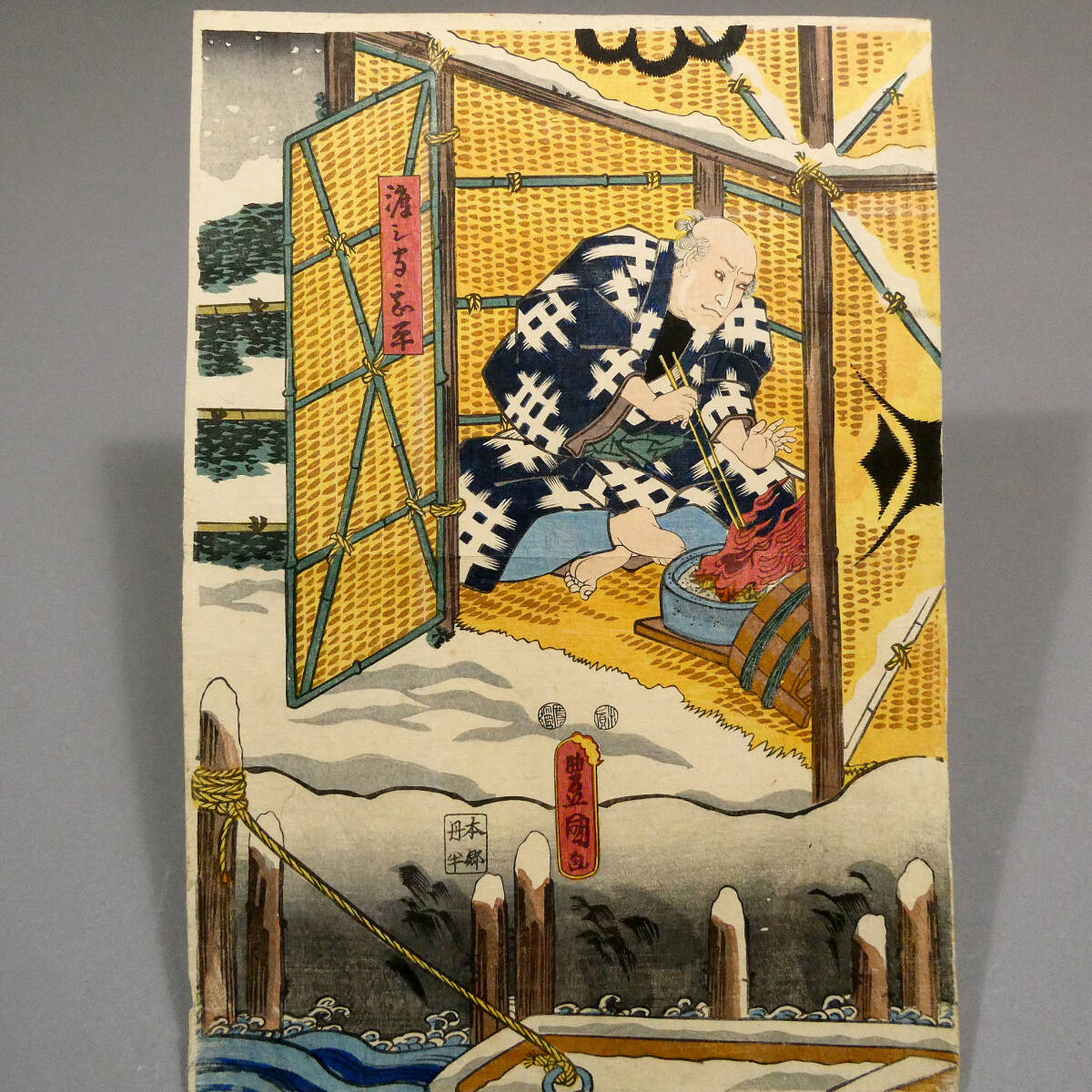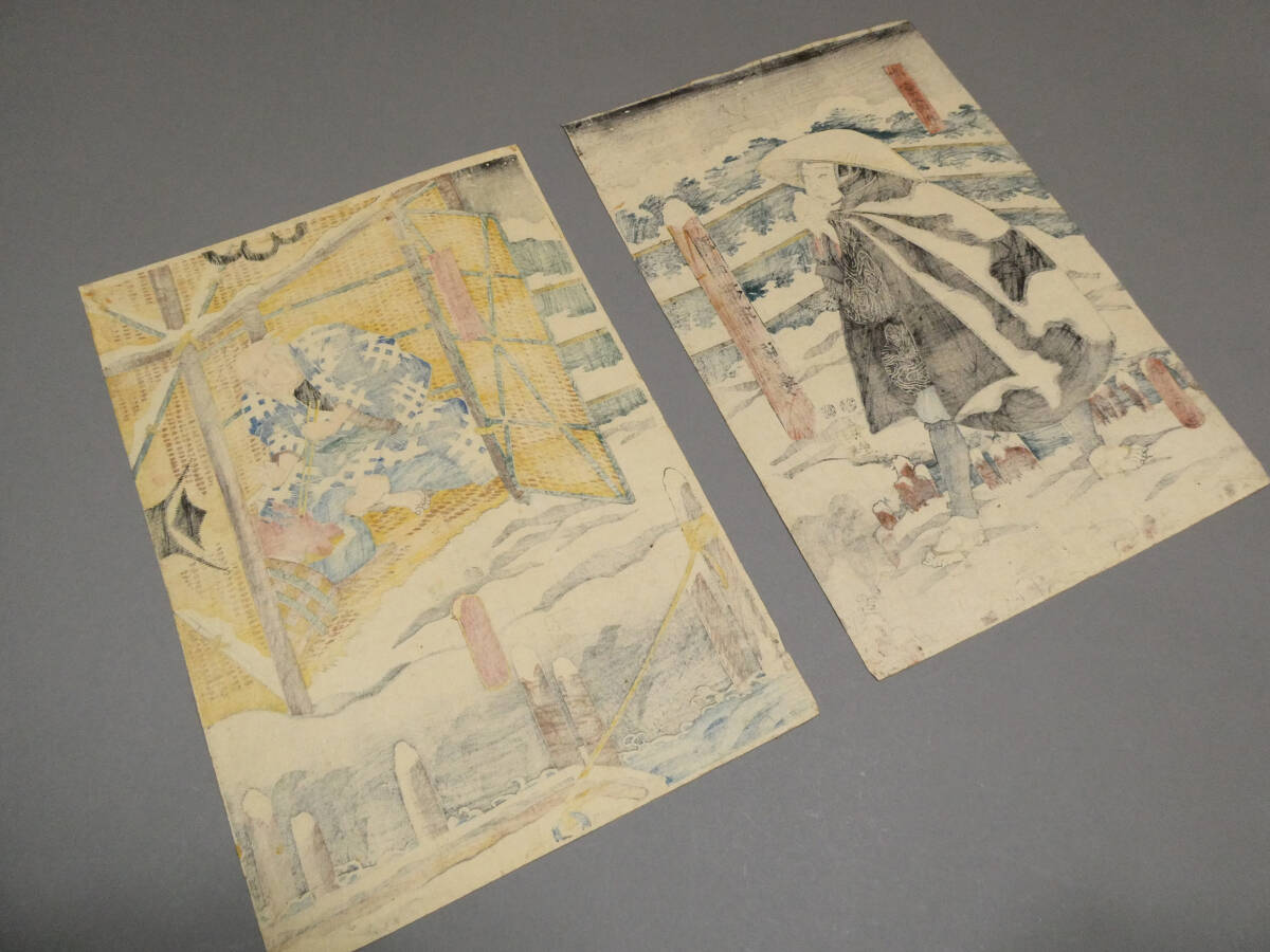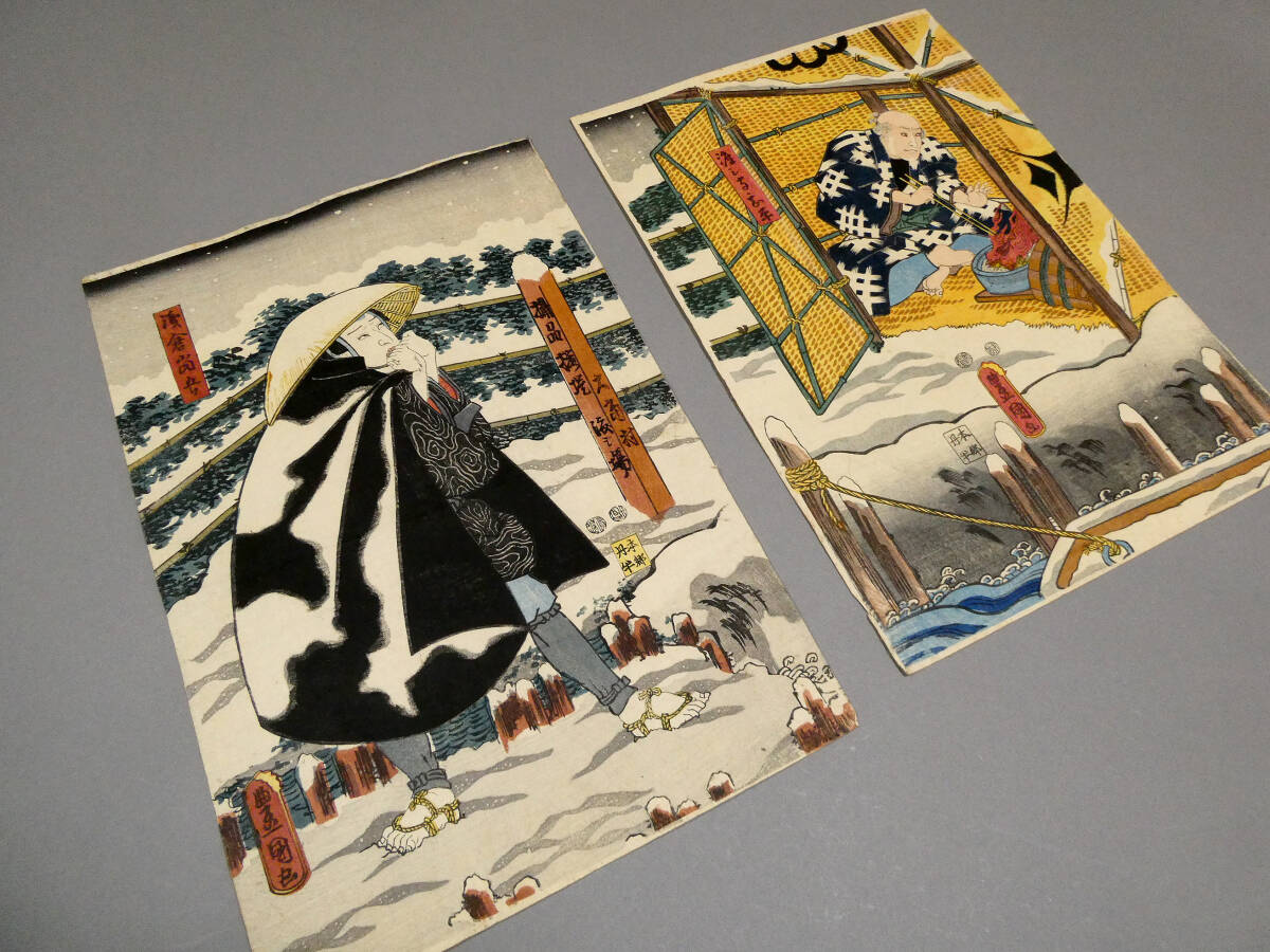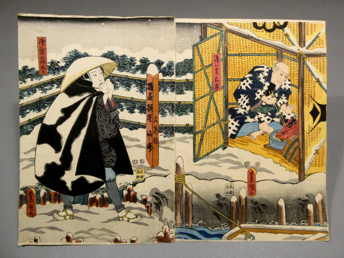 ■ 歌川国貞 江戸時代 木版浮世絵 「浅倉当吾」「渡し守甚平」2枚続 歌舞伎 『佐倉義民伝』「甚兵衛渡し場」 ■