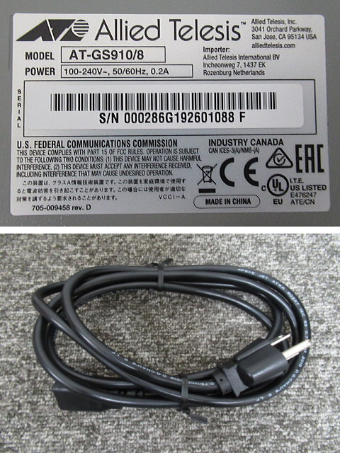 Allied Telesis製のギガビット対応スイッチ「AT-GS910/8」です。