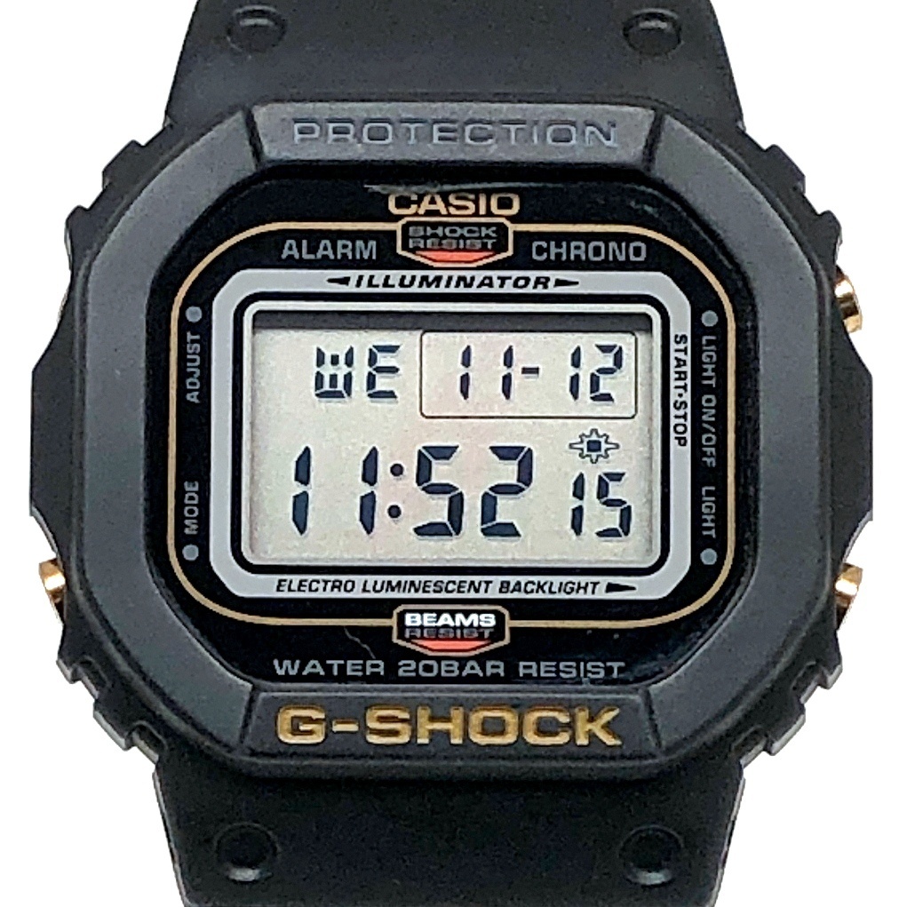 | G-SHOCK ジーショック 【ITDQ74HKYIJV】 DW-5600BE-1 BEAMS ビームス 別注 コラボモデル 第1弾 ブラック スピード BロゴEL 2002年4月発売 | |