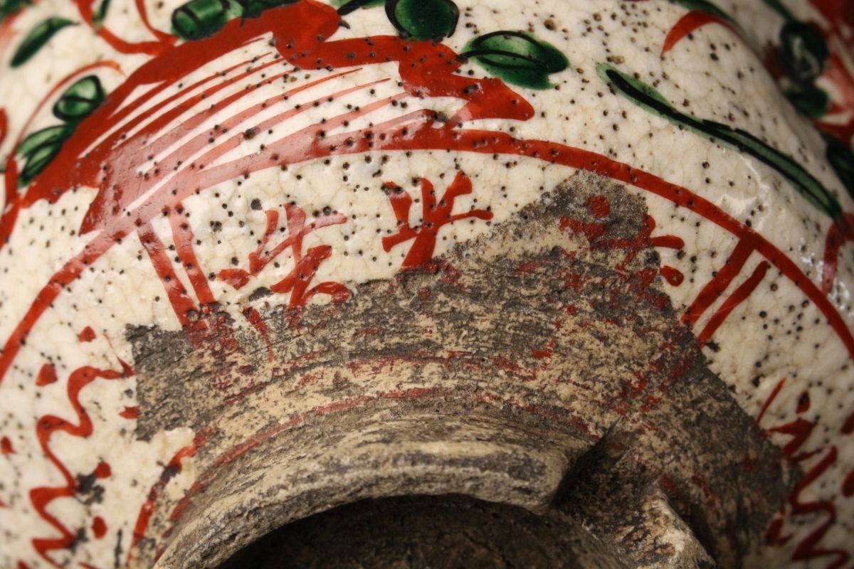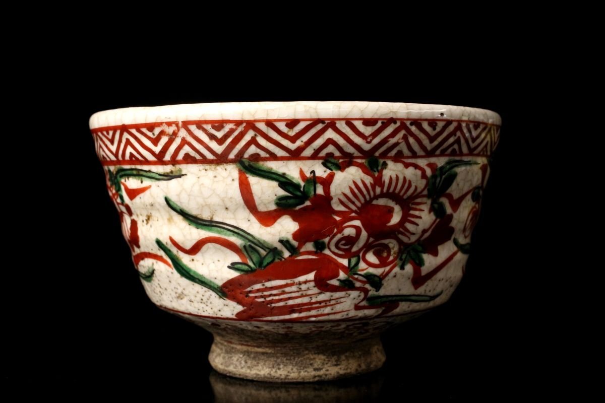 ③[.EP]25.09 25092824A* * * 商品詳細 * * * ここでしか出逢うことのできない唯一の美をご紹介させて頂きます。 青木木米 聾米造 牡丹赤絵茶碗をご紹介。 艶やかな赤絵に咲き誇る牡丹文は、華やぎと品格を兼ね備えた意匠。端正な造形に、大胆な筆致が重なり、木米の美意識が表れています。 その上、裏千家・如心斎宗左の書付箱を伴い、さらに宗慶貼札には拝領品として伝来した旨が記されており、その確かな由緒と格式が、この茶碗の品格をいっそう際立たせています。 赤絵の温雅な色調と、牡丹の吉祥を宿した意匠は、まさに雅と風格の象徴。 手に取るほどに、古の茶人たちの美意識と精神が甦るような逸品です。 ■商品内容/ 茶碗、書付箱 ■サイズ/横13㎝×高8㎝ 箱:横15㎝×高11.5㎝×奥行15㎝ ■状態/ スレ、傷、汚れ、剥げ、箱にスレ、傷、汚れ、欠損、紐のほつれがございます。 ※写真にてご確認、ご了承の上ご入札下さい。