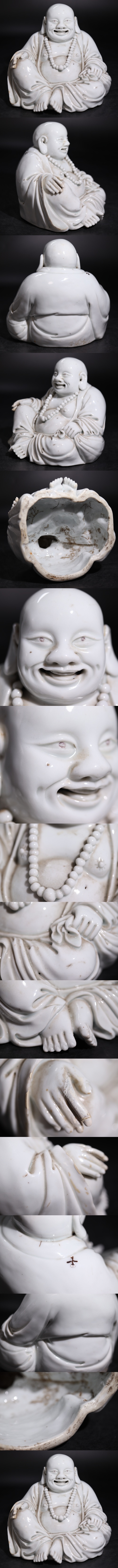 | 時代 白磁 布袋像 / 中国美術 仏教美術 仏像 置物 煎茶飾 検索: 徳化窯 定窯 .G3065 |