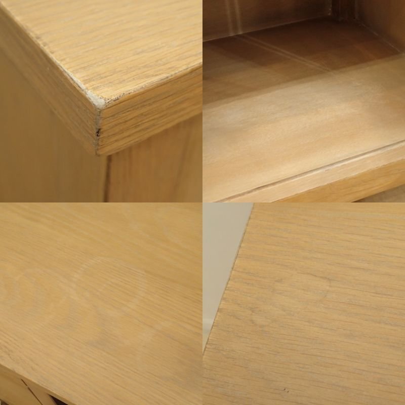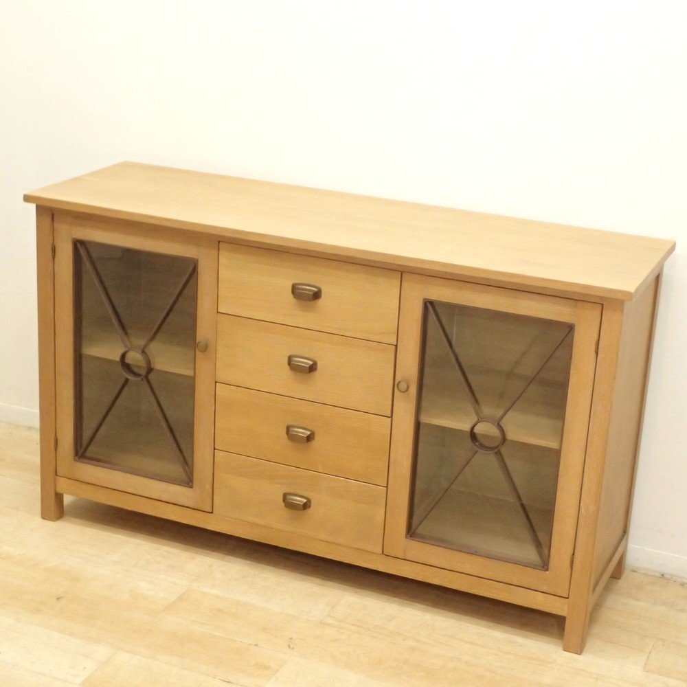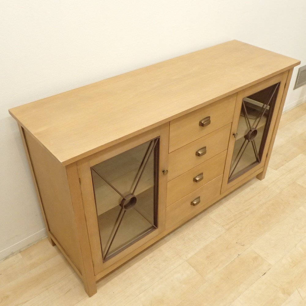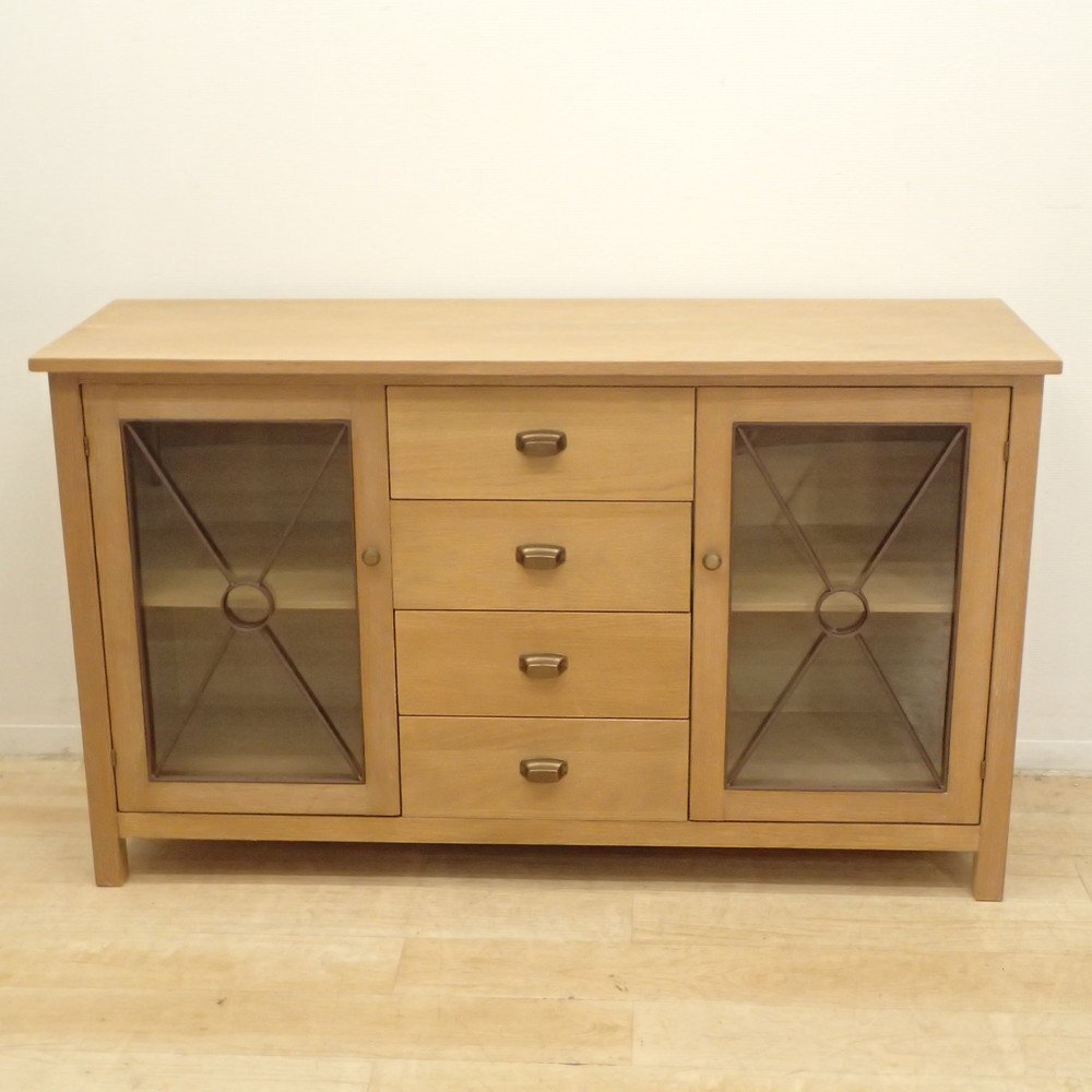 フランフラン(Francfranc) オーク材の雰囲気あるサイドボード。 レトロで自然美を感じさせてくれる、素敵なインテリア家具です。 ガラス扉のシンメトリー収納タイプで中央には小分けできる引き出しが縦に4段。 取手のアンティーク風のデザインがまたこだわりを感じる逸品。 素材に統一感があるので、空間になじみます。 気軽にリビングダイニングに置いて、普段の生活とともにその雰囲気を楽しんでみて。 ※天板のキズや使用痕などの使用感、並びに天然木を使用しているため、経年による変色やヤケなどがございます。 予めご理解の上、ご検討をお願いいたします。 |