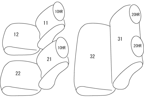 | 適合形状 | 2列目シートベルト無し ※標準ルーフ、ミドルルーフ共にシート形状同じ ※WIDEのお車は、車種を選択の画面で『レジアスエースWIDE』を選択いただき、ご確認ください。 |