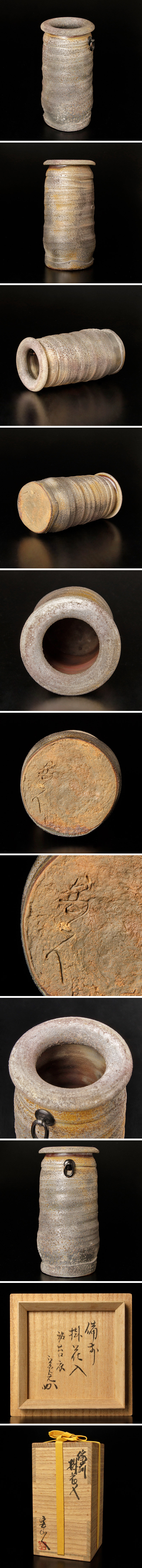 | 【古美味】岡安宮山人『堀内宗完(兼中斎)書付』備前掛花入 銘:苔衣 茶道具 保証品 |