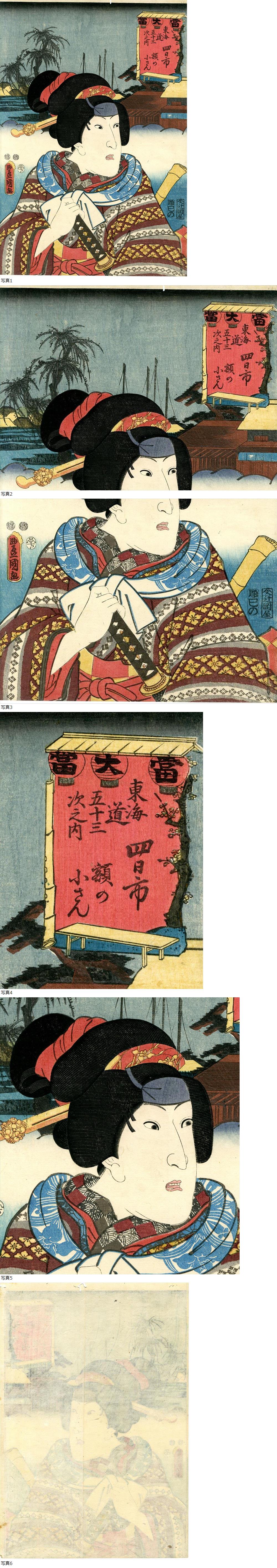 | 豊国 真作 「役者見立東海道五十三驛 四日市 額のおさん/大判錦絵」 浮世絵 江戸 木版画 |