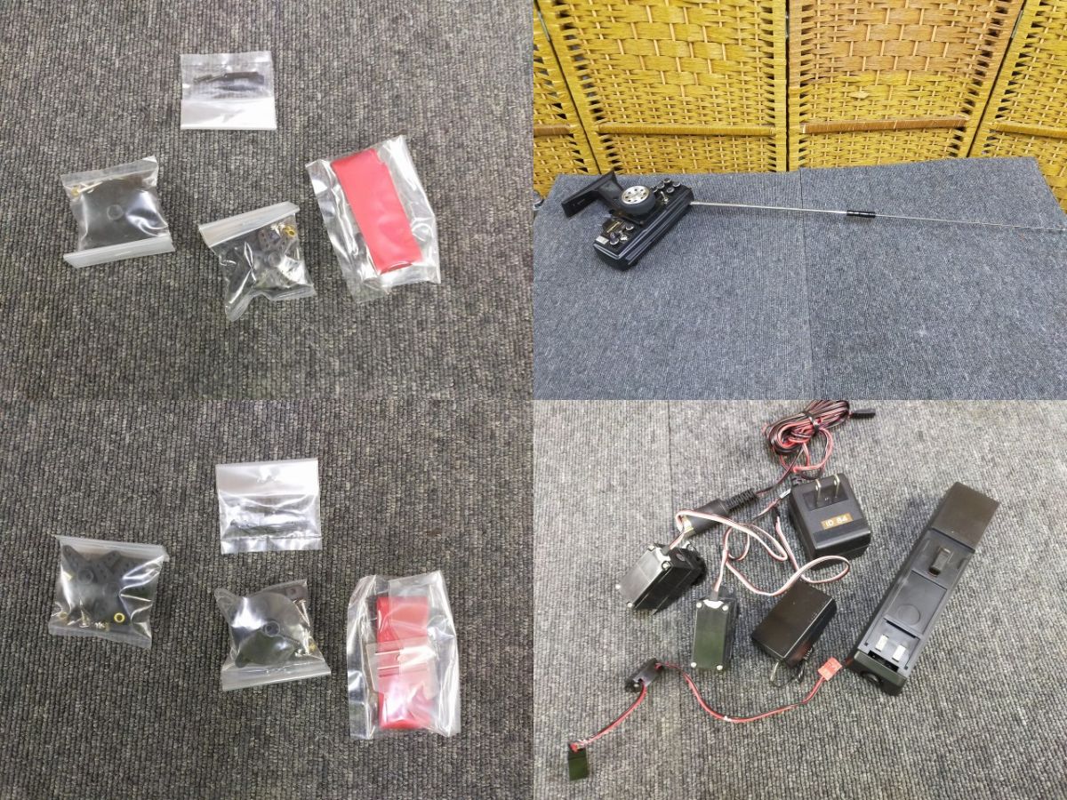 送信機、受信機、サーボ2個、充電器、電源パック、外箱など、画像にあるものが全てです。