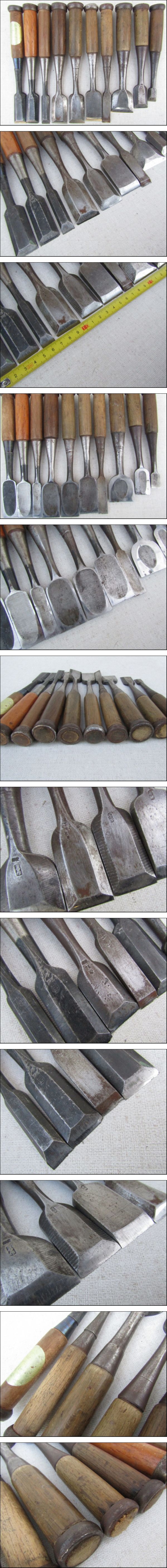 ■■A 大工道具ノミ 鑿 定二郎他 叩きのみ他 在銘 サイズ種類色々まとめて10本■■ | |||