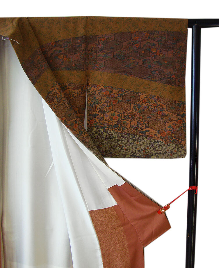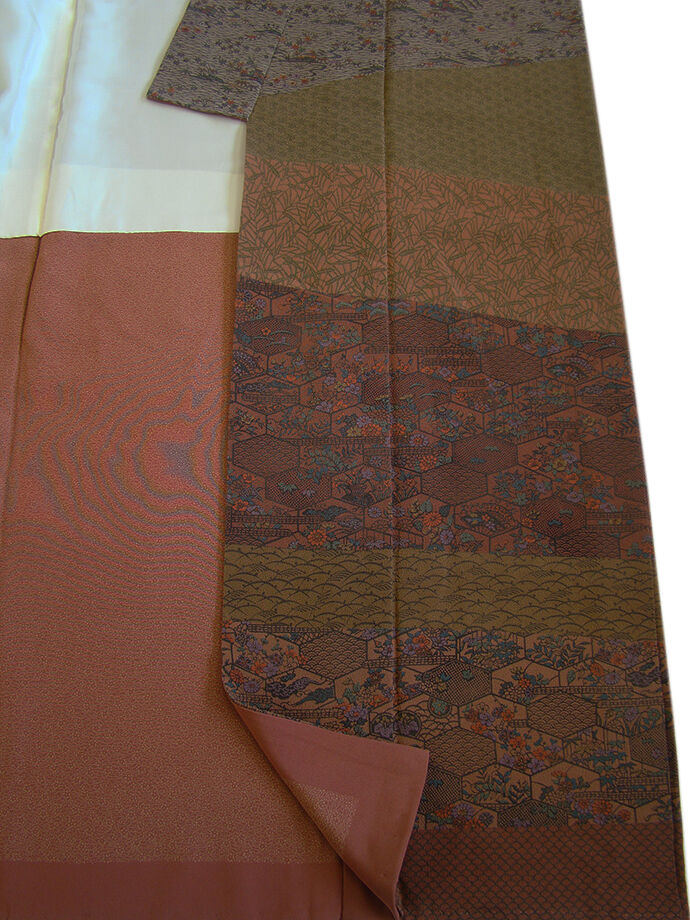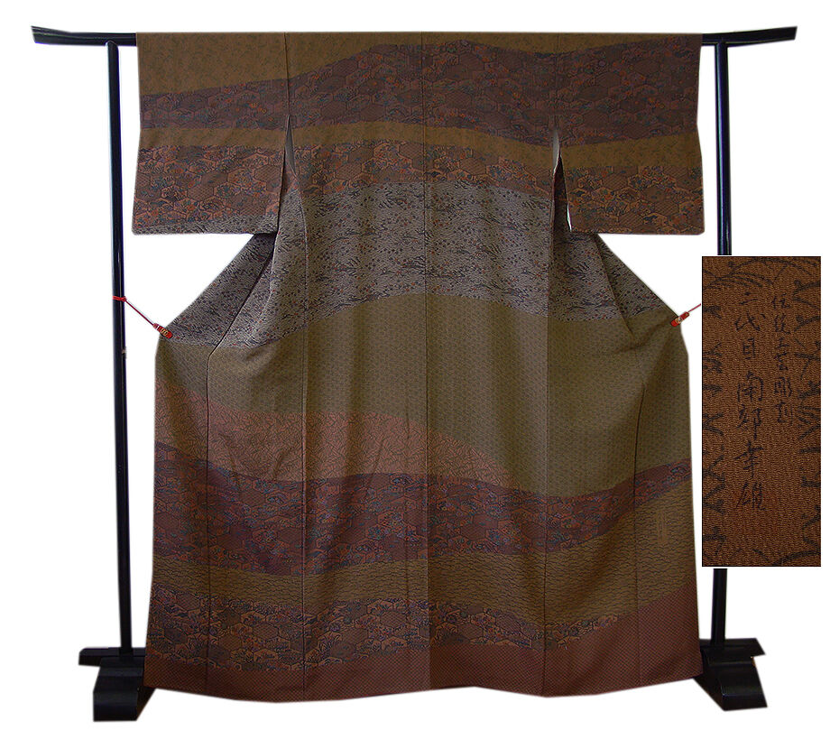 | 商品説明 | こちらのお品は袷でございますので、10月~5月までお召頂ければと思います。 しなやかなぽってりとした手触りの着心地良い重めの極上ちりめん地の生地、 紅檜皮、鴇浅葱、茶鼠、渋紙色等の染分け地に花草、つゆ草、青海波柄等の染柄、 八掛は蘇芳香色に柄入り(正絹)、伝統工芸彫刻、二代目「南部幸雄」の落款入り、 幅広い年代の方にお召頂けます。 |