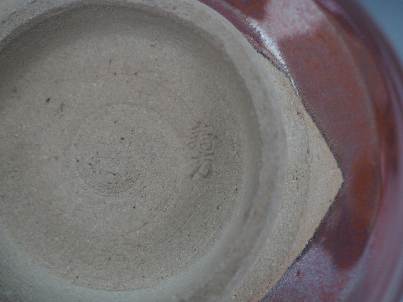 | A3297 信楽焼 宗陶苑 上田寿方 作 辰砂茶碗 紙箱付 ☆ 茶道具 抹茶器 茶器 茶懐石 茶事 茶碗 抹茶碗 陶器 作家物 在銘 陶印 美品 良品 無傷 | ||