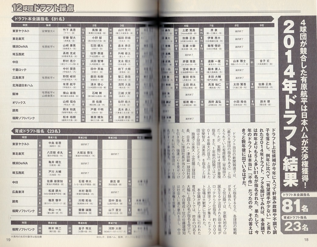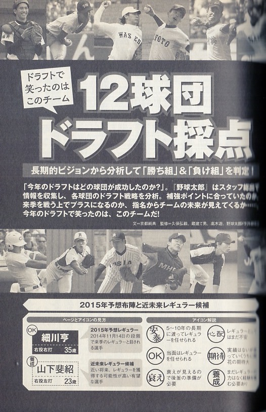 | 廣済堂ベストムック『野球太郎』No.013【2014 ドラフト総決算&2015大展望号】 | |||