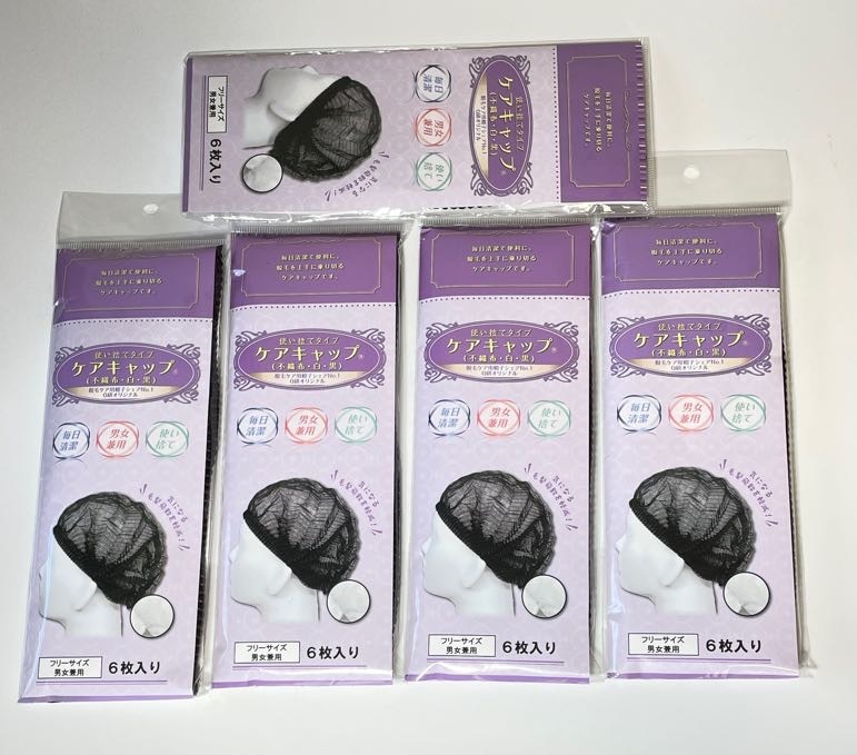 | <(_ _)>ご覧いただきありがとうございます ========================= 2023-2024年、白血病入院時に使用していました。 ケアキャップ 6枚入4袋セット+1枚 4袋は未開封、1袋は開封済みです。 フリーサイズ 男女兼用 黒 不織布製 使い捨て | |||||||||