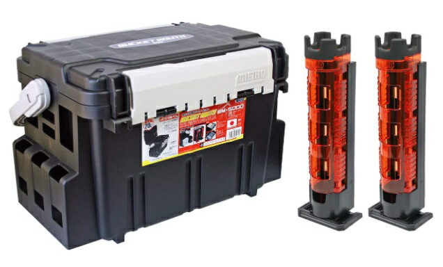 MEIHO メイホウバケットマウスBM-5000(ブラック)ロッドスタンド BM-300Light 2本付き 3点セット座れる収納BOXとして定着したハードボックス「バケットマウス」のシリーズ最少サイズ 『BM-5000』とロッドスタンド2本の 3点セットです!!強度と収納力、機能性が凝縮されたコンパクトサイズのバケットマウス。あらゆるシチュエーションにフィットするサイズ感です。【BM-5000 特長】●ストレスフリーの両開き蓋●直角ストッパー 蓋の開閉にストレスを感じさせず、取り出し・収納がスムーズに行えるよう、90度で止まる設計を採用。●スライド式中皿付●一発開閉のバックル●滑り止めゴム搭載●多目的ホルダー4963189712705【ロッドスタンド BM-300Light 特長】バケットマウスBM-9000・BM-7000・BM-5000、VS-7070、VS-7055、VW-2070、VW-2055、サイドポケットBM-120に装着可能。ネジを使うことなく装着でき、アタッチメントと本体をスライドロックで固定することで安心感を向上。フットレストも衝撃で外れにくいセパレート構造を採用の、進化したロッドスタンドです。4963189913973