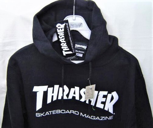 MAG LOGOプリント被りパーカ【新品】正規品 TRYON(株) 裏起毛スウェット、ポリエステル48%綿52% THRASHERのステッカー付き フロントプリント、シンプルでクールなデザインでオススメです 生地、縫製、プリント等しっかりした作りです。 写真は一つの写真を各サイズで共用しております 税込み価格8580円(価格7800円)