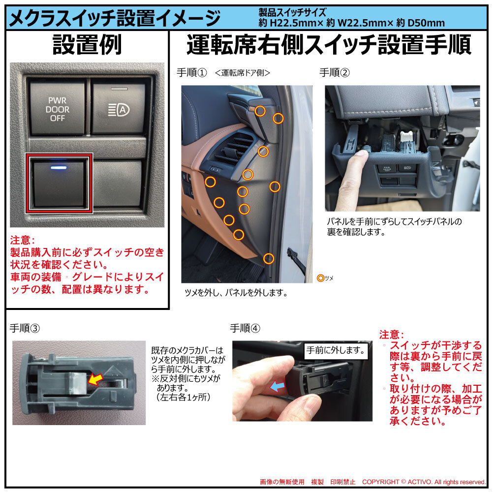 ・走行中もテレビが見れる◎ ・走行中もナビ操作が可能◎ ・カプラーオン◎ ・見た目も使い勝手も良い純正風スイッチ◎ ・送料無料◎ 40系アルファード・ヴェルファイア ディスプレイオーディオ用 走行中にテレビが見れてナビ操作が可能になるキット! 【対応車種】 (標準装備ディスプレイオーディオ装着車) ・R5.6- アルファード AGH40W・45W/AAHH40W・45W ・R5.6- ヴェルファイア TAHA40W・45W/AAHH40W・45W ※上記車名、年式の標準装備ナビ装着車に取り付け可能。 JBLプレミアムサウンドシステムにも対応。 ※ナビ機能を利用するには予め販売店での契約が必要になります。 【製品概要】 ●走行中もテレビ映像が見れる。 ●走行中もナビ操作(目的地設定等)が可能。 重要: 走行時のテレビ視聴・ナビ操作(目的地設定等)を行う際にだけ製品のスイッチをONにします。 その間だけ地図の自車位置にずれが生じます。(スイッチOFF→GPS受信で正しく補正されます。) 走行時にテレビ視聴・ナビ操作の際の地図のずれは回避出来ません。 他社製品も含め、地図・音声案内のずれが無くスイッチ操作のいらない製品は存在しません。 (自車位置がずれた状態ではMOPのドラレコ連動の地図録画地点にもずれが生じます。) ナビの目的地案内を利用する際は、製品スイッチをOFF(テレビ視聴不可)にする必要があります。 アドバンストドライブ(クルーズコントロール・LTA)・レーンチェンジアシスト機能等を利用の際は 製品スイッチを必ずOFFにしてください。 ※OFFにしないとメーターにエラー表示が出ます。 自車位置がずれていたり、製品スイッチONの際にアドバンストパーク(高度駐車支援システム)での 駐車がうまくいかない事がある(白線内の収まりが悪い・手前気味に停まる等)とのお声を お聞きします。弊社動作確認時ではこれら現象を確認出来ておりませんが、この様な事例も あるかもしれない前提で、製品のご購入を検討・理解の上、使用くださいますようお願い致します。 ハイブリッド車のエネルギーモニターのタイヤ回転表示が無回転になりますが エネルギーモニター表示・ハイブリッドシステムには問題ありません。 ●オールカプラーオン取り付け。 ※電源系の配線も含めカプラーオンですので簡潔取り付け。 ●見た目も使い勝手も良い純正風スイッチ。(2・3枚目画像参照) ※空きスイッチホールに取り付け。(ケーブルの長さは約1.2m) ※動作時青色LEDが点灯(スモールランプ連動ではありません。) ●リアカメラ類・ETC等も正常動作。 ●車種別のパネル分解説明画像が当社HPで閲覧可能。 ※車種・年式により画像が無い場合もございます。 ●1年間の製品保証。 ※互換コネクター・部品を使用しておりますが社内でひとつひとつ検査を行い ディーラー様にもご利用頂いている製品です。 ディーラー様、業者様いつもごひいき頂きましてありがとうございます。 【重要】 ※全製品社内にて検査・チェックを行っておりますが、残念な事に初期不良が発生してしまう場合がございます。 その際、代品または返金にて対応させて頂きますが、工賃・脱着費用・手間賃等の金銭補償は一切行えませんので その点もご理解頂いた上でご購入ください。 【注意事項】 運転者の方が走行中にテレビ画面の注視・ナビ操作を行う事は道交法により禁じられております。 運転者以外の方が視聴及びナビ操作を行う事は問題ありませんので 使用の際は予めご理解願います。 適合間違い、お客様理由での返品・交換・キャンセルはお受け出来ませんので ご不明な場合は必ずご注文前にメールにてお問い合わせください。 当製品は1年間の製品保証(当社の規定により)がございますが、 当製品以外の車両及びそれらに付随する機器等の不具合、故障、 製品脱着費用、交通・運搬費等につきましては当社では一切責任を負いません。 自己責任の上、当製品をご使用、お取り付けください。 ご使用、お取り付けされた時点でこれらを承諾したものと致します。 (製品番号:TNS-004) |