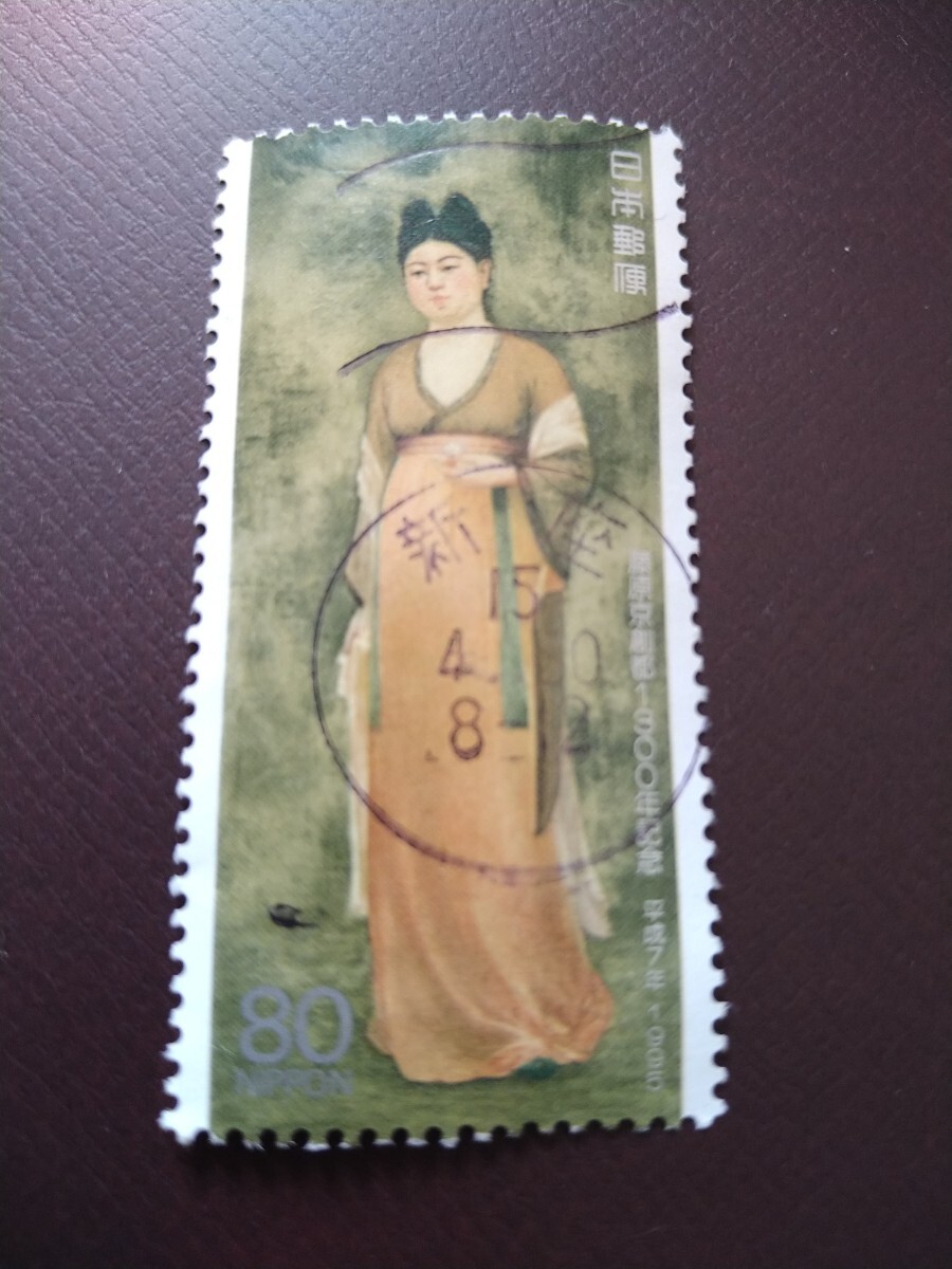 藤原京1300年(1995)に新座局の機械印。発行からだいぶ後年の消印です。日付やや薄いですが、消印の全容が収まっており概ね良好かと思います。