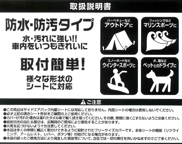 | 防水・防汚タイプシートカバー ドライビングシート フロントシート用 フリーサイズ 1枚 |