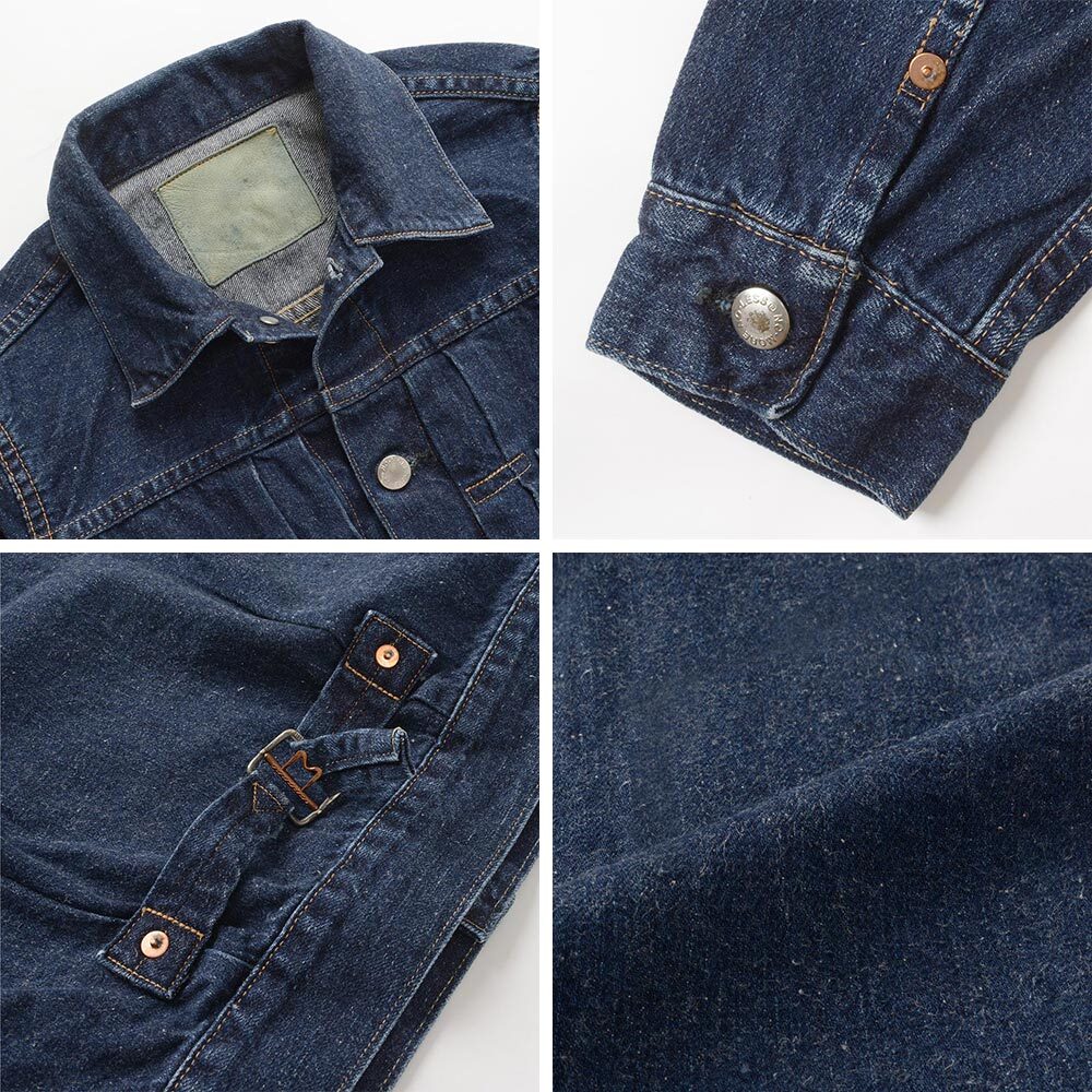 | ノーモアノーレス / NO-MORE NO-LESS デニムジャケット 【商品特徴】 本格的な作りにこだわる「NO-MORE NO-LESS(ノーモア ノーレス)」より、現代では幅広い世代からワークウェアの定番として愛されている 「デニムジャケット(Gジャン)」が、数量限定で入荷しました。 「ヴィンテージ古着の忠実な復刻」をテーマに、流行に左右されないファッションを追い続け、多くの顧客に愛され続けている 「WAREHOUSE(ウエアハウス)」が製造を請け負うのが、「NO-MORE NO-LESS(ノーモア ノーレス)」。 そのこだわりを継承したこちらは、【セカンドモデル】のダブルポケットにフロントのアクションプリーツ、【ファーストモデル】の シンチバックを採用。名作と名高いデニムジャケットのディテールをしっかりと詰め込んで製造された1枚となります。 身体に沿うようなすっきりした着用感で、ゴワつかず程よい厚みの柔らかい着心地は、ロングシーズン様々な着こなしをお楽しみいただけます。 素材・ディテールともに、着用年数ごとに味わいを増す「育てる一着」、ぜひワードローブに加えて下さい。 デッドストック品のため、サイズ・数量に限りがございます。 小さいサイズをお探しの小柄な女性の方から、本物志向のキッズにもご着用していただけます。 ぜひこの機会に「NO-MORE NO-LESS(ノーモア ノーレス)」デニムシリーズをお楽しみください。 ■インディゴウォッシュ インディゴをある程度残しつつ、色落ちやアタリ(ヒゲ)を控えめに施し「USED感」をプラスした、落ち着いた印象のブルーデニムです。 |