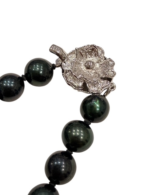 | H7-10-2 黒蝶真珠 ピーコックグリーン ネックレス 真珠 パール 留め具SILVER刻印あり 約8mm 約35g シルバー アクセサリー 約42cm | |||