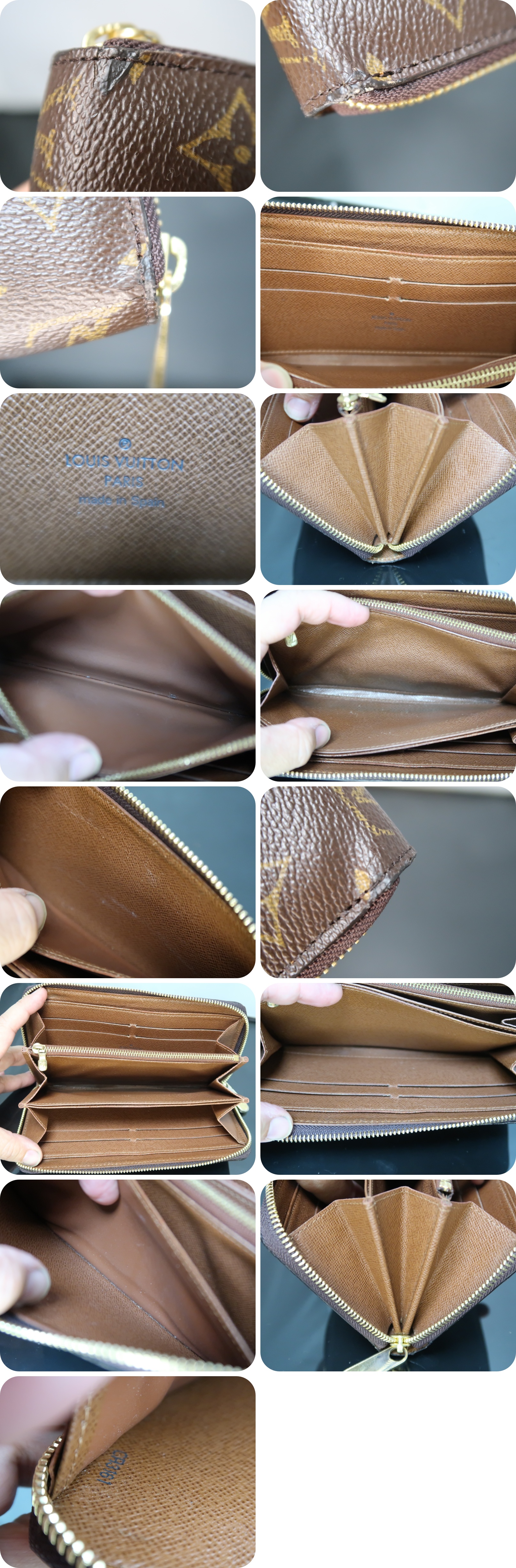 | <外側> | ファスナーを私が交換しております。引手は純正です。<br>モノグラム生地の縁取りに欠けが見られます。目立ちにくいように補修をしております。 |