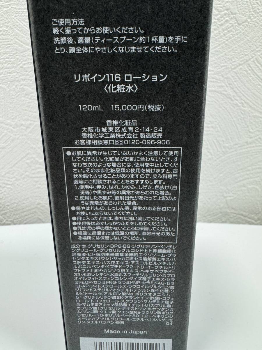 ■■ 【未開封 カシー化粧品 香椎化粧品 リポイン 116 ローション 化粧水 120ml 定価15,000円】 (化粧水) 内容量:120ml 定価:16,500円 販売元:カシー化粧品 ご覧頂きありがとうございます。 ◇商品説明 未開封品・未使用品となっております。 長期保管品の為、品質の劣化がある場合ございます。 製造年月日は不明となります。 使用期限が気になる方はご遠慮ください。 ご理解頂ける方のみ、ご入札宜しくお願い致します。 素人の個人主観が基本となります。 当方に専門知識が無い為、専門的なことはわかりかねます。 間違っている部分もある可能性があるかと思われます。 画像をご自身でご確認したうえでご入札ください。 ↓↓↓↓↓↓↓↓必ずお読みください↓↓↓↓↓↓↓↓ ◆◆◆◆◆◆◆◆◆◆◆◆◆◆◆◆◆◆◆◆◆◆◆◆◆◆◆ ◆骨董品などについて ・未鑑定です ・タイトルは、検索キーワード含みます。 ・真贋については、分かりません。 ◆写真の状態が優先されます。 モニターの発色の具合によって実際のものと色が異なる場合がございます。ご了承ください。 ※※※※※※※※※※※※※※※※※※※※※※※※※※ お支払いの意志のない落札が増えております。 落札して頂いた際に、「確実にお支払いまでスムーズに行える方」のみ、 ご入札ください。 ※※※※※※※※※※※※※※※※※※※※※※※※※※ ◆◆◆◆◆◆◆◆◆◆◆◆◆◆◆◆◆◆◆◆◆◆◆◆◆◆◆ 以上をご理解の上、「ノークレーム、ノーリターン」でお願いいたします。 | |
