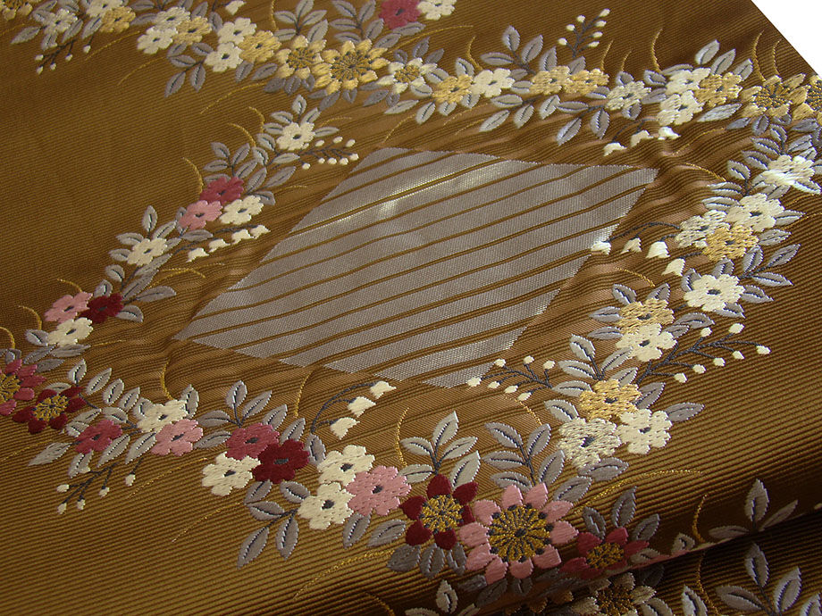 | 項 目 | 美品 訪問着 無地用 西陣織 刺繍柄 袋帯 (正絹)仕立上り ロング寸 <Fs1207> | ||