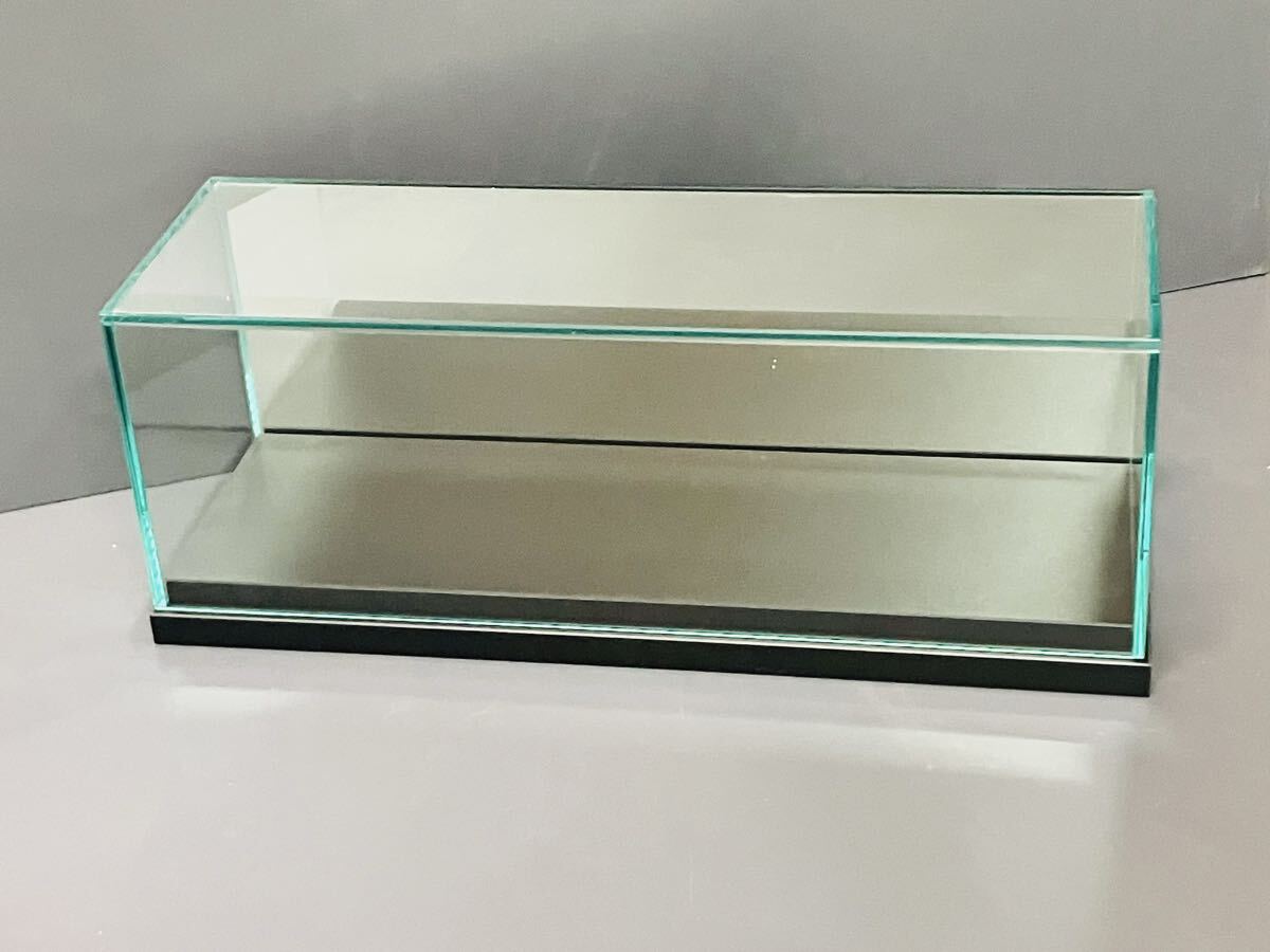 | 【Size:サイズ】 ガラスケース:450x150x155mm (幅x奥行x高さ) 台座:約455x155x32㎜(幅x奥行x高さ) 上部分/約438x138x16㎜ 下部分/約455x155x16㎜ セット最大サイズ:455x155x171㎜ ケース有効サイズ/約440x140x134㎜ 【Material:素材】 ガラス・合板 【Collar:色】 台座部分 メラミン化粧板マットブラック(ツヤナシ) 商品説明: ガラスケースになります。 大切なコレクション商品を管理するために製作したガラスケースになります。 プラモデル、フィギュア、人形、骨董品など多目的にお使いできます。 背面ガラスはミラーになってますので中に飾る商品の後ろ側も見ることができます。 厚みのあるガラスを使用しておりますのでアクリルと異なり傷がつきにくく、中に飾る大切な商品も紫外線から保護されます。 ※ワンオフ、一点商品の場合基本的に同じカラー、仕様での再製作はできません。ご興味を頂けたましたら早目のご購入をお願い致します。 【ハンドメイド・ワンオフについて】 素材に天然木、鋼材、特殊素材を使用しておりますので材料の性質上、節・小傷、色むら、色あせ、錆が入る場合がございます。 また商品によって特殊な加工、形状にする際に小傷が付く場合がございます。 エイジング加工(さび加工)やハケ塗りハケ跡を残す場合がございますが 上記記載内容全て使用上に問題の無い商品の特徴、仕様としてご理解下さいませ。 | |||
