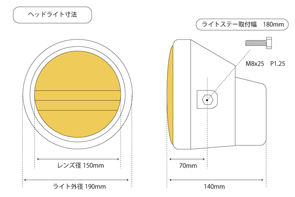 マルチリフレクターヘッドライト イエローガラスレンズ 外径190ミリ |