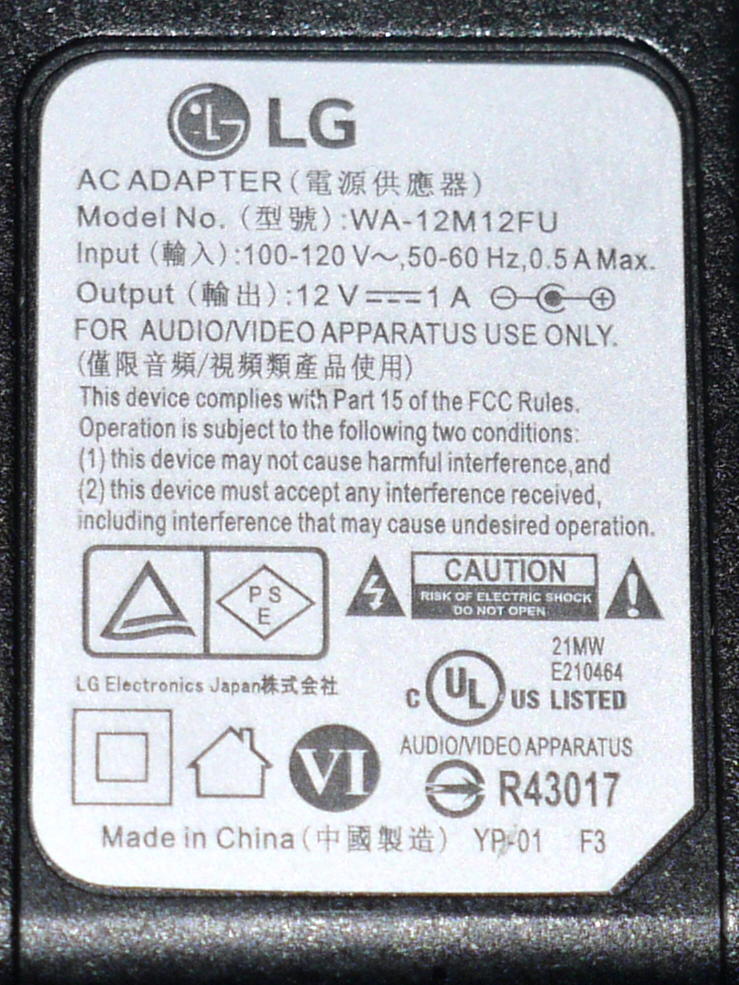 LG電子 ブルーレイ プレーヤー用 ACアダプター WA-12M12FU DC12V 1A の出品です| 出价者 | 信用 | 价格 | 时间 |