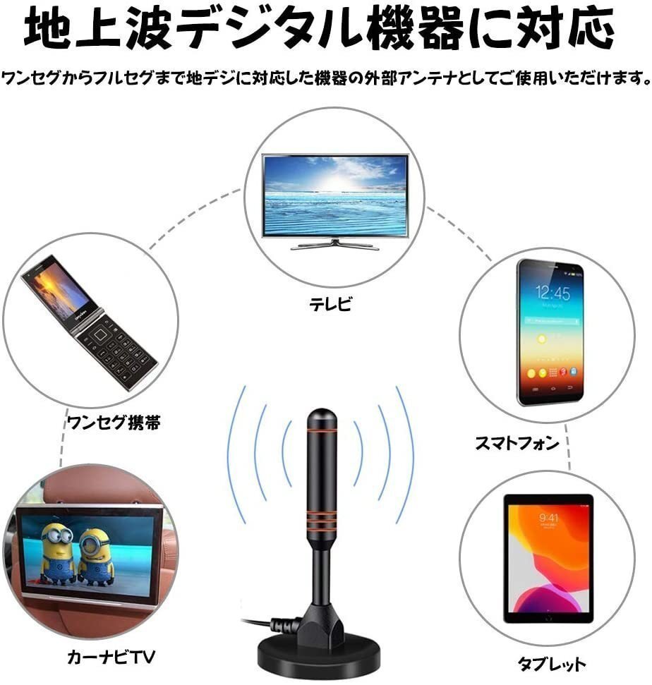 室内アンテナ テレビアンテナ ポータブル 4K HD TV デジタル ブースター内蔵 高性能 120KM受信範囲 5m 車載 地デジ専用 高感度 UH
