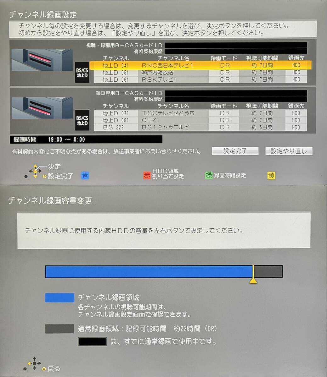 | 商品説明 | 当方の商品をご覧いただき有り難うございます。 ★商品状態★ ・商品の状態は画像でご確認ください。 (写真参照) ★今回交換したHDDは、新品でWD20PURZの24時間使用される監視モニター用の優れたモデルです。 ★本体2TB+外付け2TBで合計4TBの容量があります。 ★USB-HDD対応 ★2016年製 ★ 動作確認 ★ ・放送:地デジ、BS、CS受信確認済 ・HDD:地デジ、BS、CS録画・再生確認済 ・DVD:市販DVD再生確認済 ・BD:市販BD再生確認済(BD-R XL再生確認済) ・HDD→DVD-RWへのダビング確認済 ・HDD→BD-RE DLへのダビング確認済 ・上記以外の確認は、していません。 ★ 付属品 ★ ・新品リモコン(非純正品) ・B-CASカード(2枚) ・外付けHDD(2TB) ・新品HDMIケーブル(1.5m) ・電源ケーブル(非純正品) ★ 本体特徴 ★
