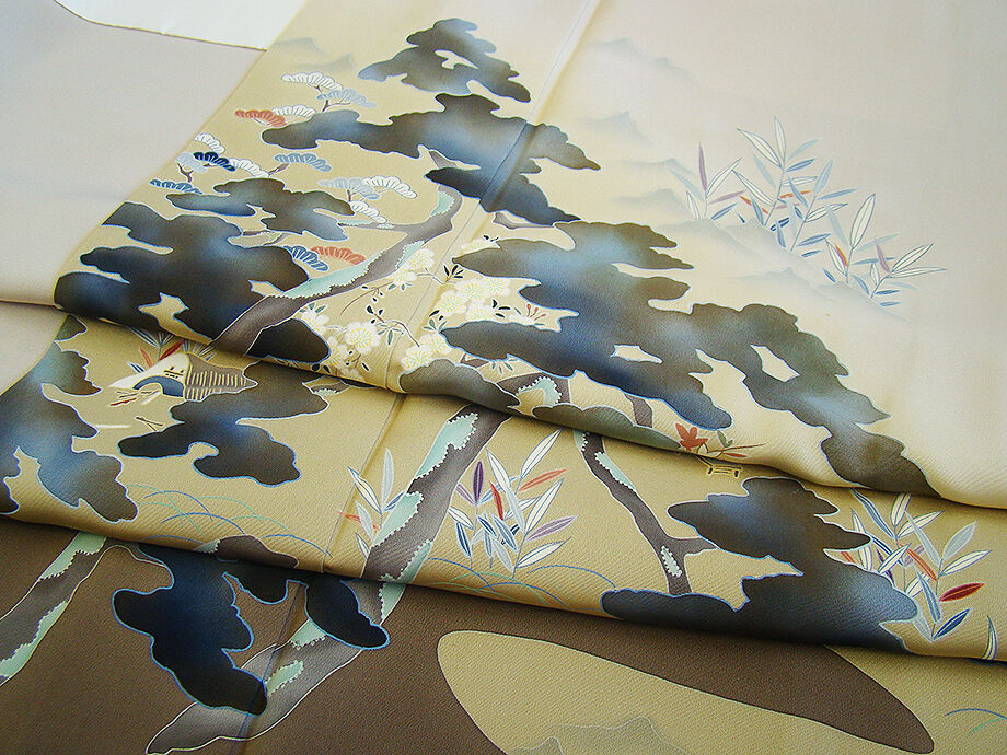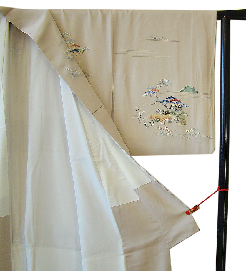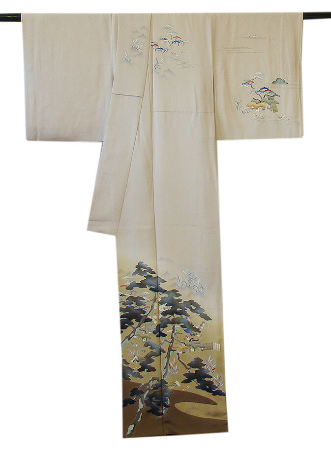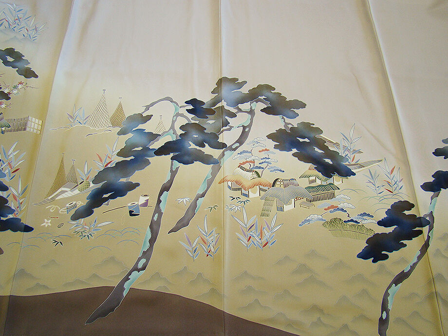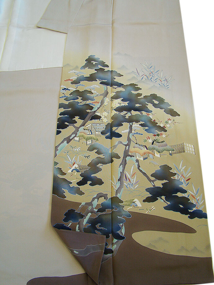 | 商品説明 | こちらのお品は「袷」ですので10月から5月までお召頂ければと思います。 とてもしなやかで柔らかな手触りの着心地良いさらりとした滑らかな極上一越地の生地、 淡い亜麻色地に裾にかけて媚茶、木蘭色ぼかしに松の木、家屋等の本加工染、 気品に満ち溢れた彩りが正統派のお着物として一枚は欲しい逸品の素敵なお着物です。 八掛は共布に柄入り(正絹)、幅広い年代の方にお召頂けます。 |