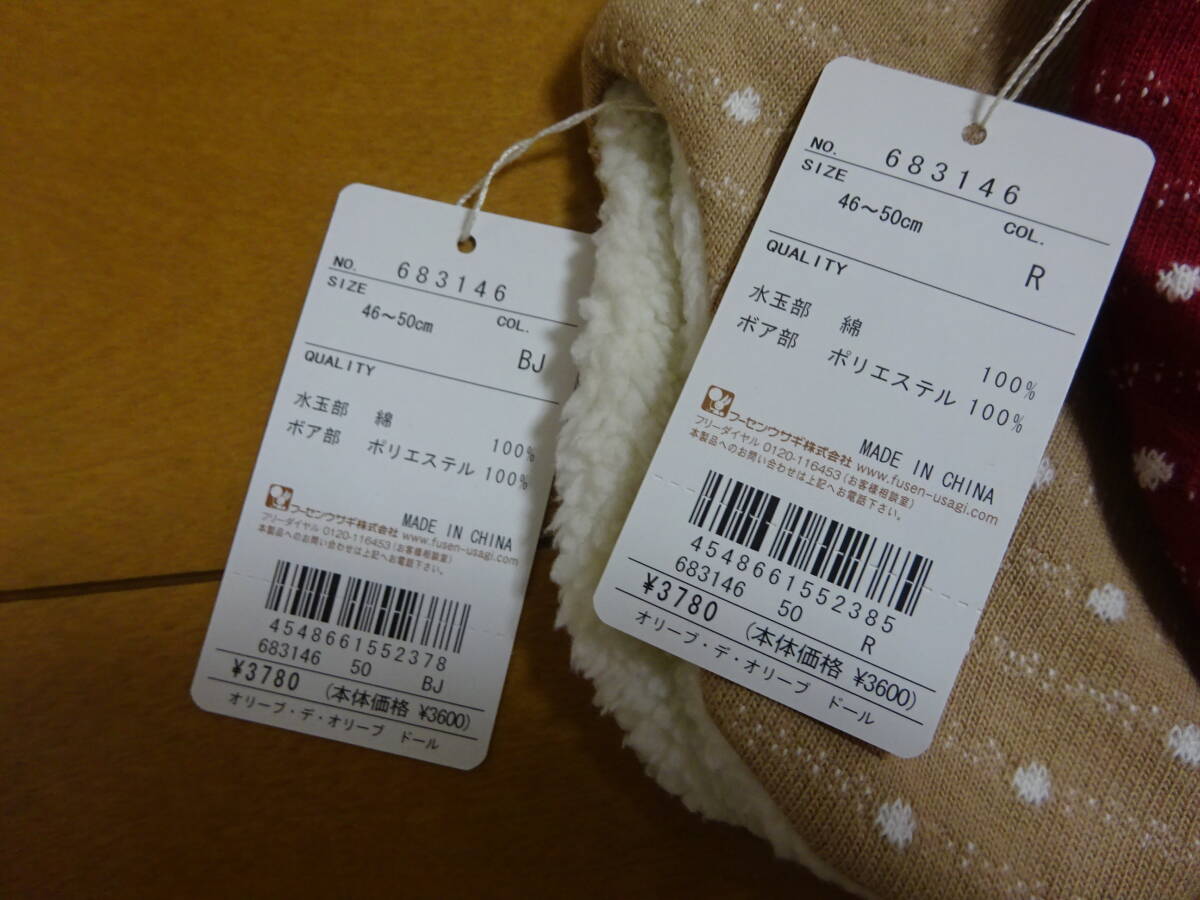 | 新品タグ付きです。 自宅保管品です。 サイズ=46~50cm 素材=水玉部 綿100% ボア部 ポリエステル100% 価格 3780円 注意事項 □ なるべく現物に近い色で画像を載せておりますが、 素人の撮影、撮影環境による若干色の違いが出る事があります。 □ 保管の際に生じたシワがある場合があります。 □ また悪い評価のある方、新規の方につきましては、 入札・落札後のキャンセルが多いため、削除させていただく場合がございますので ご了承ください。 □ 落札後24時間以内に、ご連絡いただける方 落札後2日以内にご入金いただける方 上記内容に対応いただけない場合は予告なく落札者様都合にてキャンセル とさせていただきますのでご了承ください。 □ 万が一、配達中に事故(品物破損、配達不着)が起こった場合は 落札者様にて、ご対応をお願いします。 「定形外郵便」や「クリックポスト等のメール便」は、品物に対する補償が無いため ご理解のうえ、お取引下さるようお願い致します。 □ ノークレーム・ノーリターンでお願いします。 ※基本的に土、日、祝日はナビ・発送等お休みさせて頂きます。 (時間あれば確認いたします。) | |||