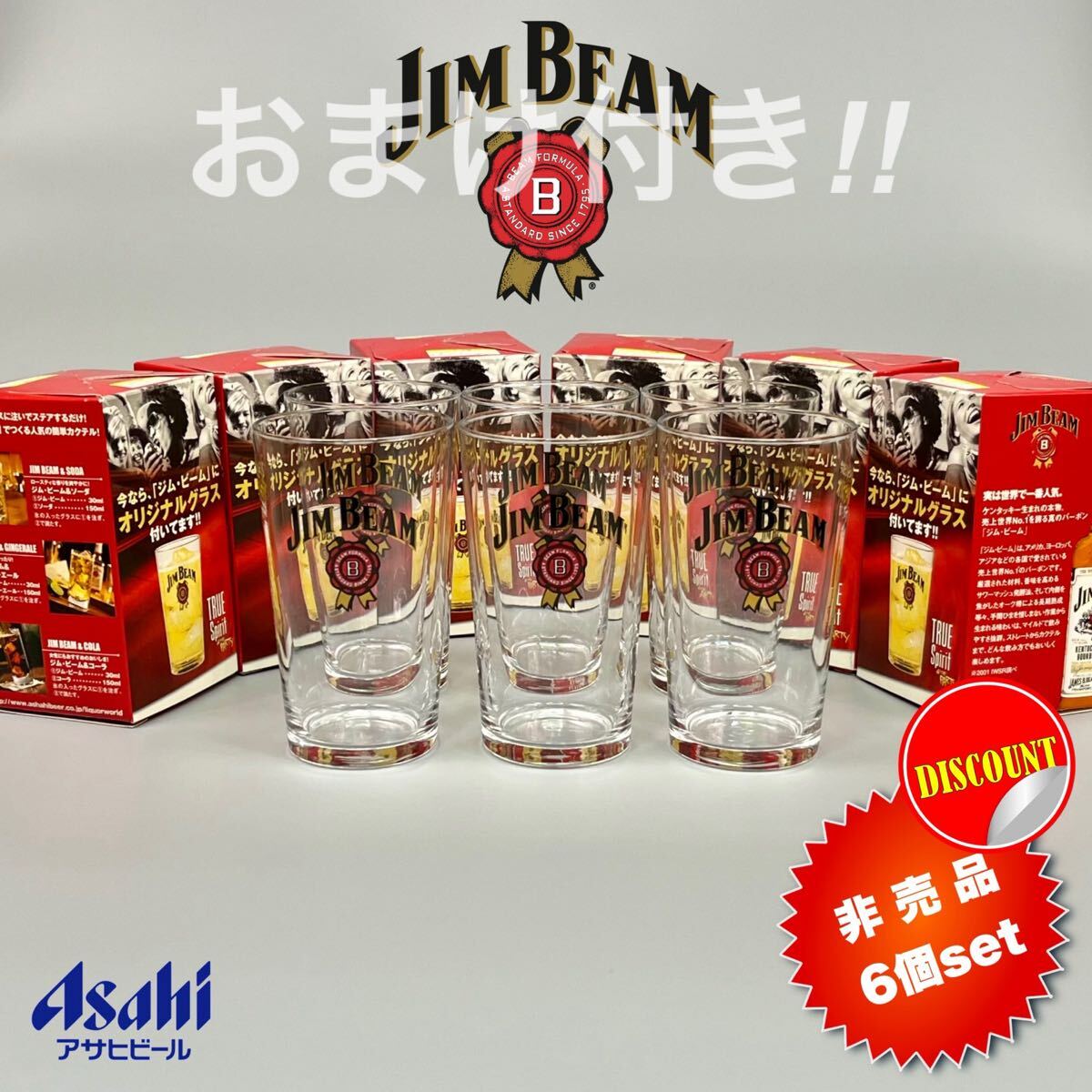 | 【未使用・非売品☆送料込み即決価格!!】JIM BEAM ジムビーム アサヒビールノベルティ 石塚硝子製造 ロゴ入りオリジナルグラス 6個セット | |||