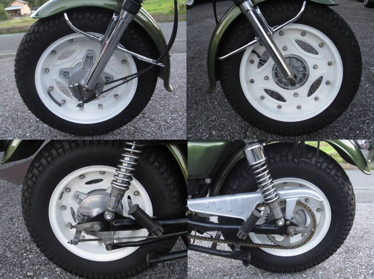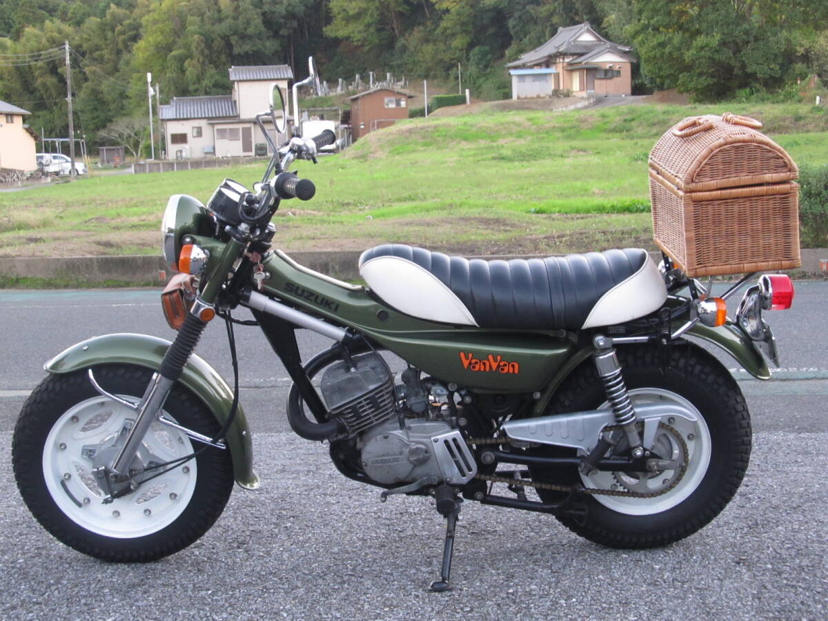 | 商品説明 | スズキ バンバン125になります。 車体番号 RV125-417** 1974年モデル 走行距離 27333㎞(おそらく実走行) 改造点 オプションリアキャリア・オプションセンタースタンド・バスケット・ブルックスツールバッグ・シートレザー張替等 付属品 キー2種類、空気入れ(動作OK)、パーツリスト(コピー)、ガスケット等消耗品少々 私の知る限りの履歴はこちらです。 7年位前にメッキパーツを再メッキ、エンジンオーバーホール、各部レストアされております。 その際にエンジンはシリンダーホーニング、ピストン類、腰下ベアリング類新品交換済み 2023年シート張替え、チェーン交換、フォークオーバーホール 2025年外装オールペイント、キャブレターオーバーホール、プラグ交換、ギアオイル交換、バッテリー交換 詳細の状態は下記の通りです。 エンジンのかかり、吹けあがり、加速、走行、ブレーキ、全く問題なく絶好調です。 エンジン音も非常に良く異音等ありません。 タイヤはF2014年で7部程度、R2014年で4分程度になります。 わずかなヒビがみられます。 灯火類や計器類も動作問題ありません。 外観は下記の通りです。 外装は板金業者にてオールペイント後、それ程走行しておりませんので非常に綺麗な状態です。 メッキパーツは再メッキから年数が経過し、よく見ると細かい錆がみられますが綺麗な状態です。 ホイールやフレーム、マフラー等は昔再塗装されており、多少粗や塗装ムラ、タッチペン跡等見られます。 50年以上経過しておりますので、健在するバンバン125の中では状態の良い物に値するレベルと思います。 写真を3枚以外にも各部の状態など沢山貼り付けましたので、商品説明の下もご覧下さい。 もし、表示されない場合はこちらをクリックして下さい。 https://aquabike.sub.jp/auction/auc105.html ナンバー登録後、乗って帰ることも可能です。 千葉県袖ケ浦市にて現車確認可能です。 |