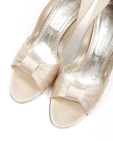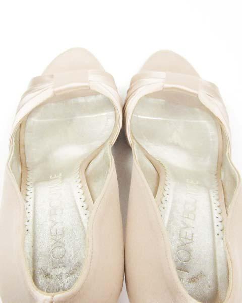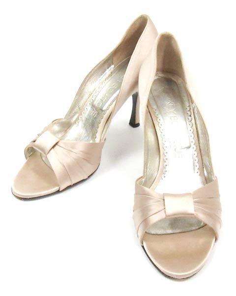 | やや光沢のあるサテン地の素敵なパンプス。甲にはリボン風デザイン、サイドは美しく見えるラインになっています。高級感と華やかさがあり、ちょっとしたパーティーなどでいかがでしょうか? |
