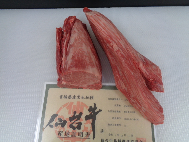 | 仙台牛A5牝 超特牛ヒレ頭(テート部位) 900g | ||