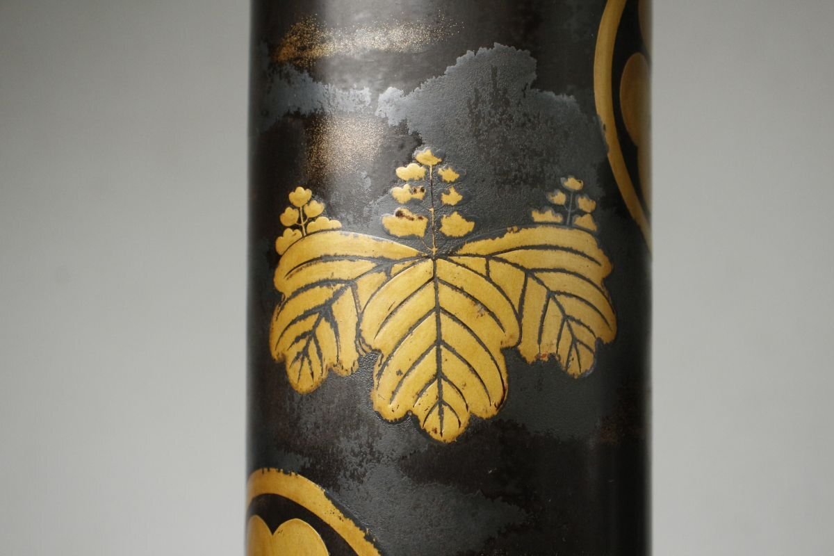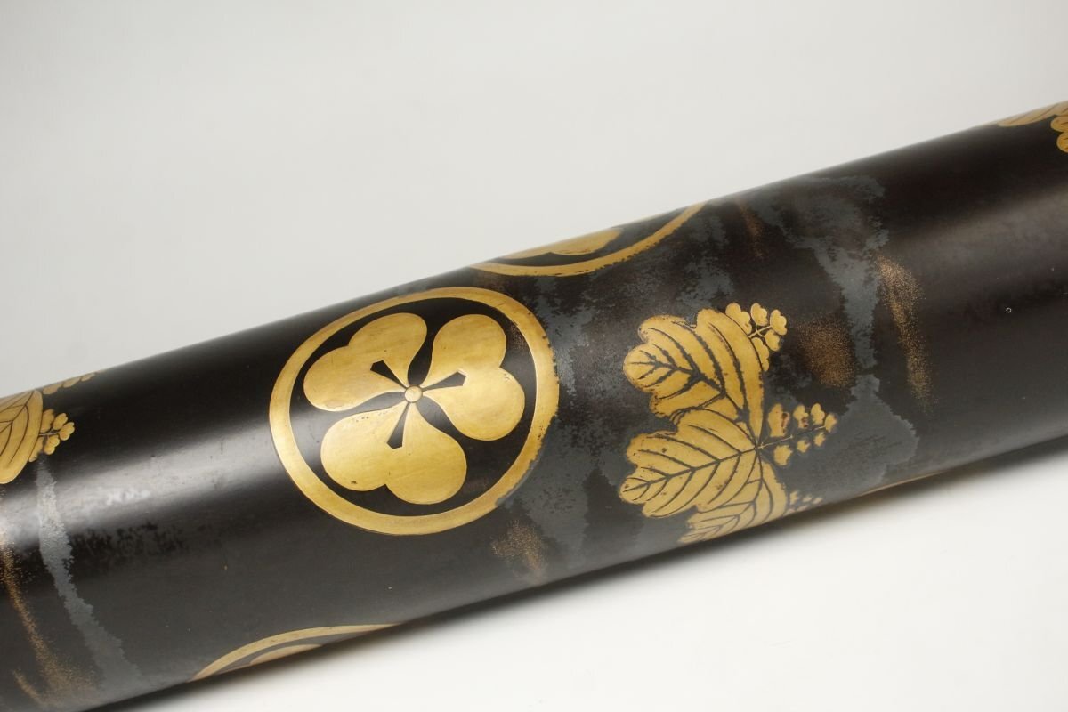 [.YR]25.3 25031906* * * 商品詳細 * * * ここでしか出逢うことのできない唯一の美をご紹介させて頂きます。 漆黒の漆に金蒔絵の家紋が優雅な 黒漆塗金蒔絵 家紋入水筒のご紹介です。 五七桐紋と丸に片喰紋の金蒔絵が華やかな蒔絵に 縁には金彩が施された水筒は 高貴な身分の武士が使用していたことが伺える貴重なお品でございます。 余白を活かしゆったりと描かれた家紋が華やかな魅力溢れるお品を、 この機会に是非お手元にてご堪能下さい。 ■サイズ/全長65㎝×幅7.5㎝ ■状態/ 経年による傷み、スレ、傷、割れ、欠け、 漆ひび、剥げ、錆び、パーツ欠損がございます。 ※写真にてご確認、ご了承の上ご入札下さい。 ![]() * * * 支払詳細 * * * !かんたん決済 * * * 発送詳細 * * * 入金確認後3営業日以内に発送致します。 ※直接引き取りも可能です。 60~160サイズにつきましては 佐川急便、ゆうパックのどちらかで発送いたします。 ゆうパック発送の場合、弊社の発送日から追跡サービスに問合せ番号が反映されるまで 約1日ほどお時間がかかりますのでご了承下さい。 佐川急便での発送の場合送料は下記のURLにてご確認下さい。 同梱を希望の場合は梱包サイズを測り直し 佐川急便の定価料金としますので ご了承ください。 * * * 注意事項 * * * 商品到着後、すみやかに受取連絡をお願いします。 また、運送中の破損があった場合は速やかに当社までご連絡下さい。 保険を利用するのに受取連絡後に運送会社による現場での破損状況確認が必要となります。 勝手に返送されますと保険の適用外となりますのでご注意ください。 * * * * * * お問い合わせ:082-236-8669 |