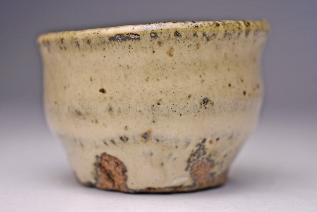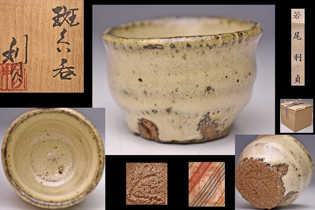 サイズは 66mmx64mmx高さ47mm です。 鼠志野の人気陶芸家 の 若尾利貞 氏の 作品です。 こちらは 珍しい 斑唐津風の ぐい呑です。 手にフィットする 良いぐい呑です。 宅配便60サイズにて発送します。 他にも多数出品してます。同梱対応いたします。