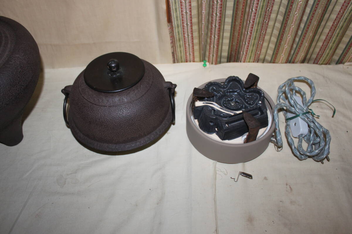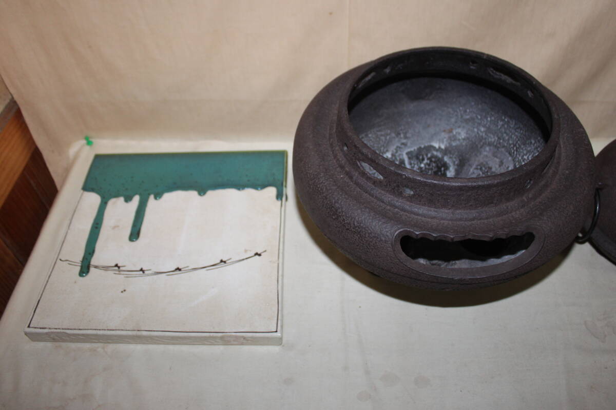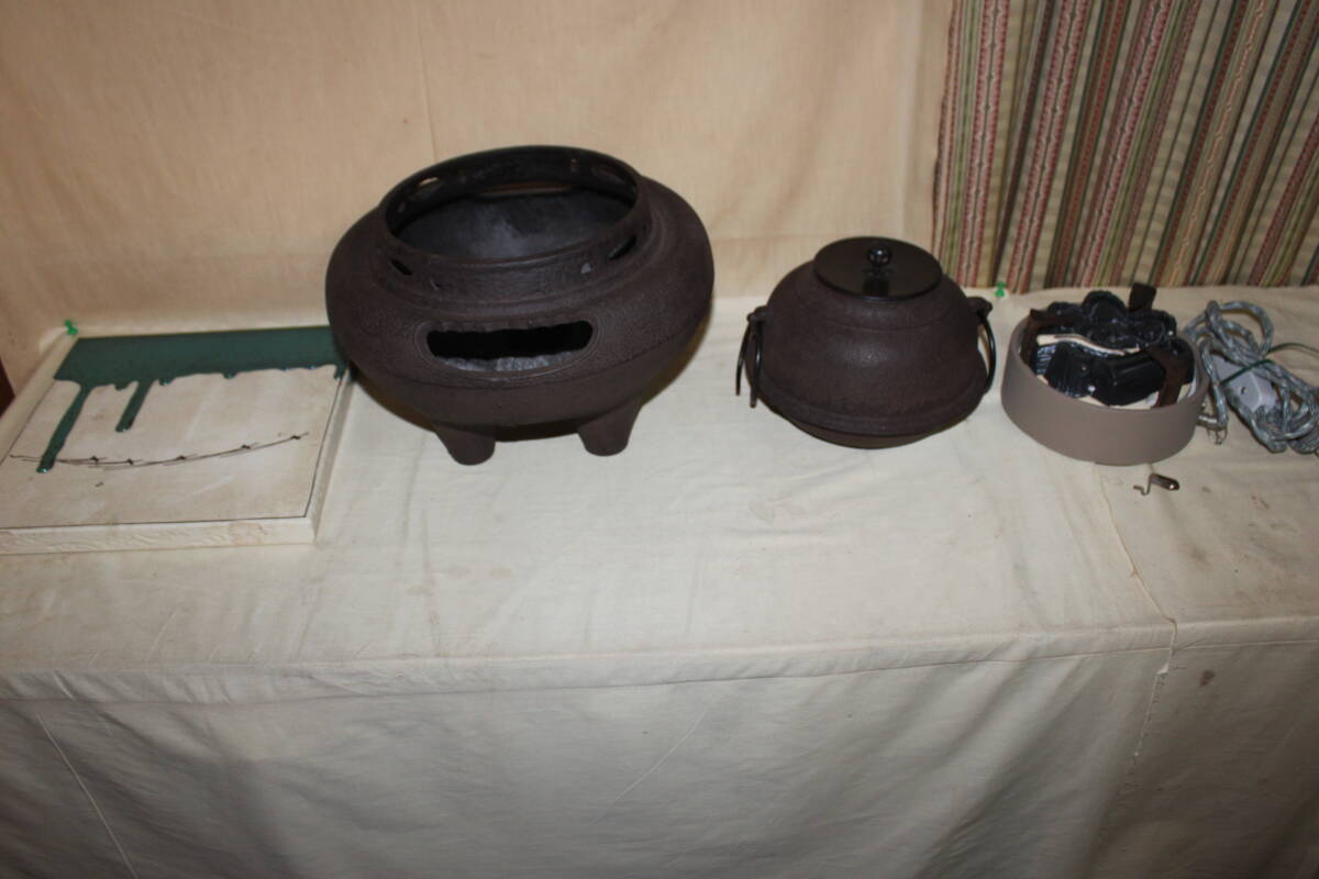 茶道具 鉄製 朝鮮風炉釜 織部敷瓦 野々田式電熱器410w 未使用品です。 未使用で長期自宅保管のお品です。 紙箱はありますが、汚れております。 【風炉釜】 高さ約33cm 【風炉】 高さ約21.5cm 胴径約29cm 口径約20cm 【釜】 高さ約16cm 胴径約20cm 口径約9.5cm 【織部敷瓦】 高さ約3cm 縦幅約28cm 横幅約28cmです。 写真を良くご参照の上 ノークレーム、ノーリターンにてお願い申し上げます。 ★当方、古いものを主体として出品させて頂いております。 点検は致しておりますが汚れや傷等の見落としがある場合がございます。 ご了承の上よろしくお願い致します。 ★発送詳細 ・佐川急便の予定です。 ★支払方法 ・!かんたん決済 他にも色々出品しています。よろしかったらご覧になってください。
